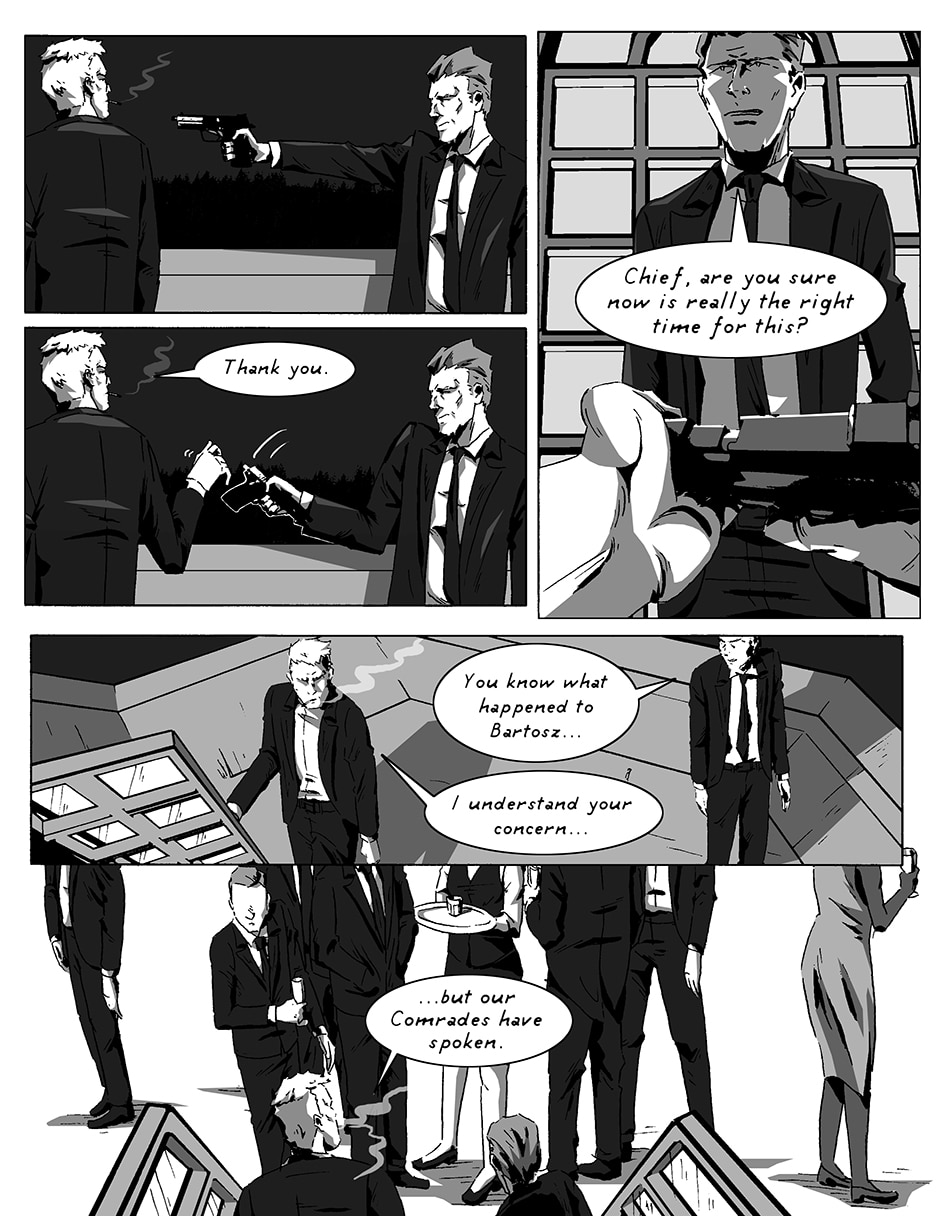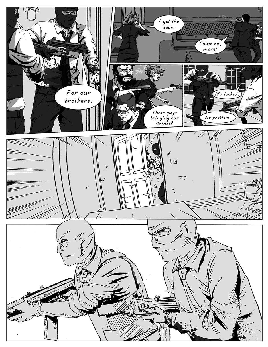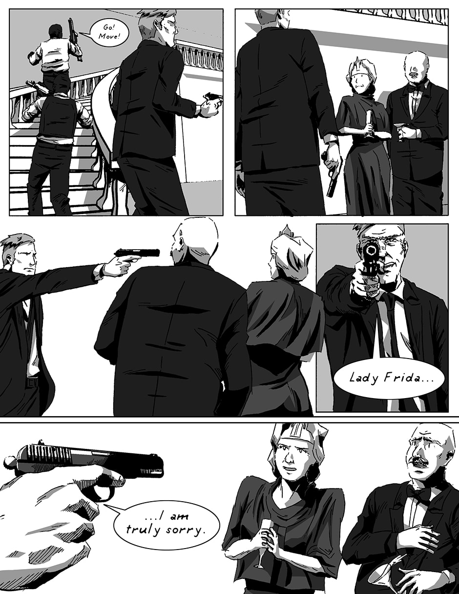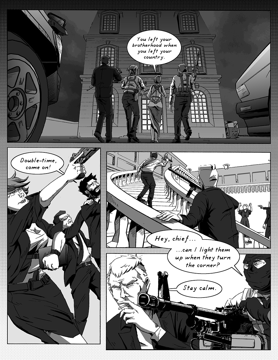 Two military intelligence agents, posing as clerical workers, are caught in a terrorist attack in a swanky Chateau. Find out how the amalgamation of their actions, and experiences, get them out of a night filled with crazed insurgents, desperate monarchs, manipulative bureaucrats, and kooky religious zealots!