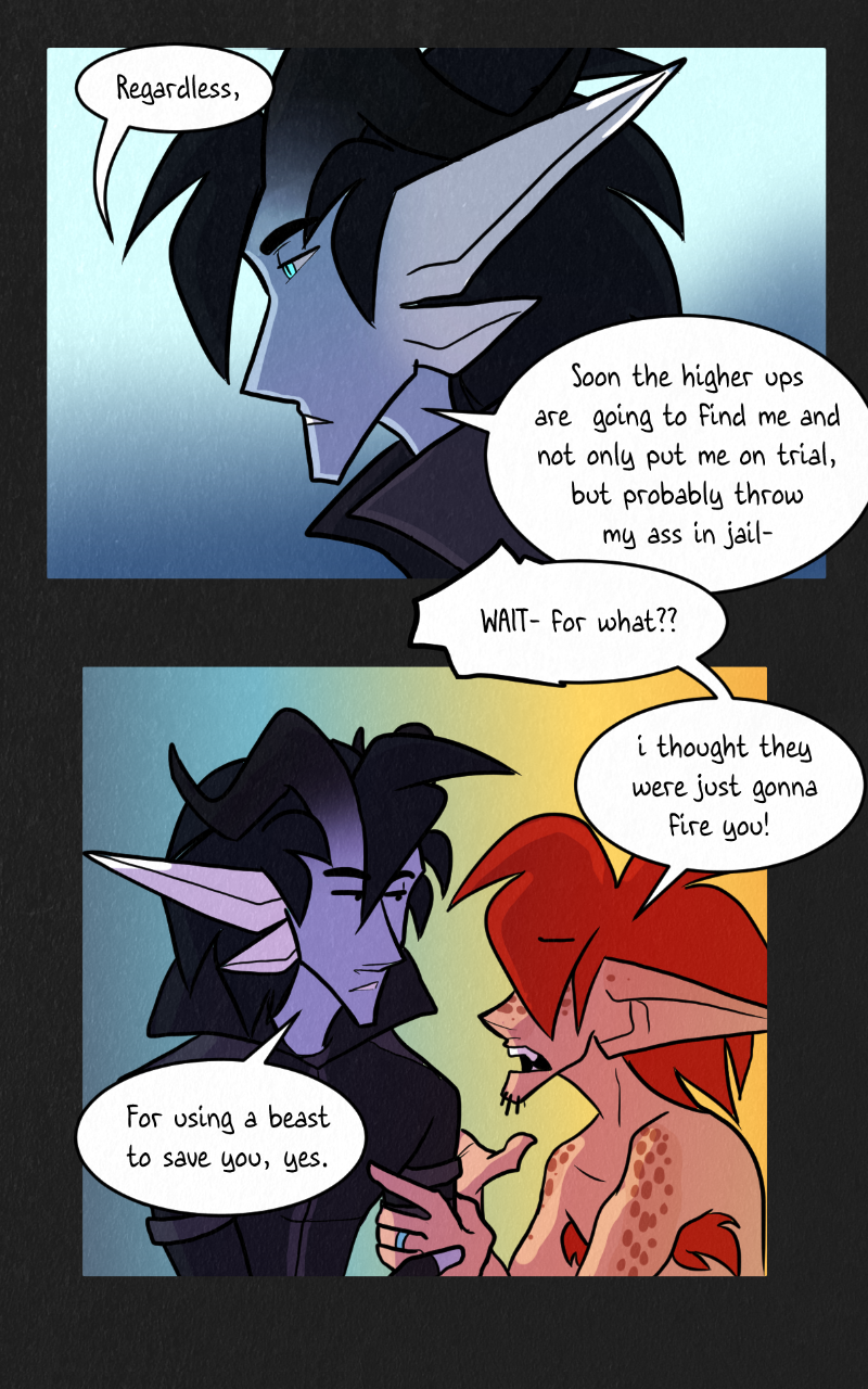 Bonehill, an intellectual who’s too tired to be smart, and Zerako, a sweetheart pyromaniac, are aroace husbands who find themselves forced out of their home city (which they wanted, anyway) and take the opportunity to go off on an adventure. Will they get more than they bargained for, or will the people around them? (yes)