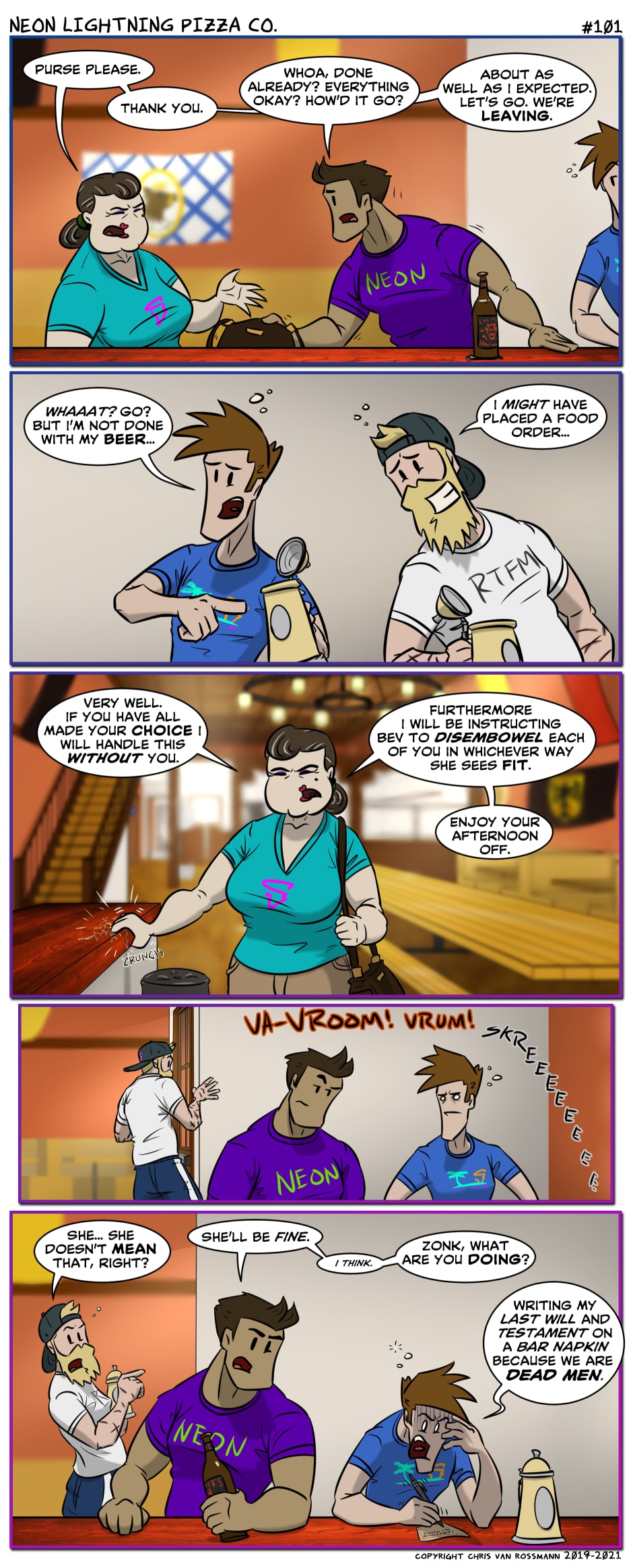 Delicious pizza. Obnoxious customers. Annoying coworkers. Murderous soda robots. Find all of these things and more at Neon Lightning Pizza Co, the Pacific NW college town pizzeria where the food is amazing and the service is downright abusive!