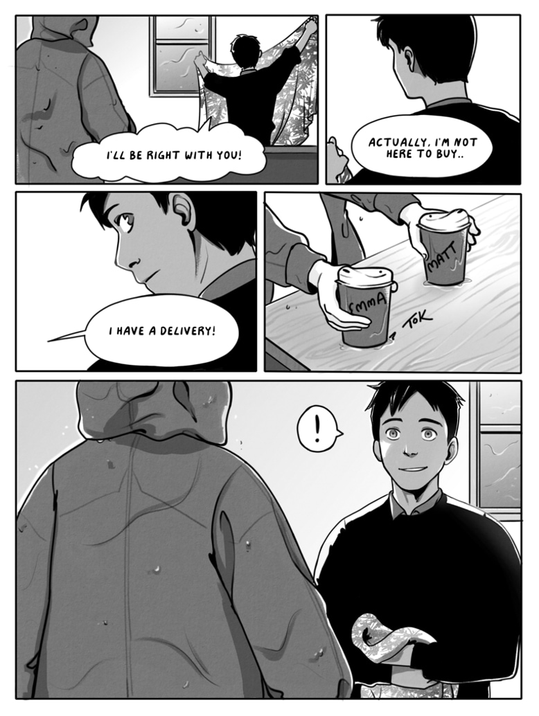 Two college students begin drinking coffee and studying together every day. But their friendship is put to the test when the unexpected happens! A short comic by MochaSplats and myself. Updates Sundays.