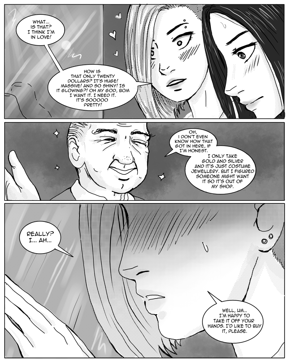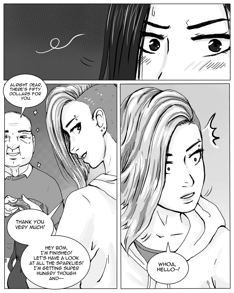 A mysterious crystal heart enters Hana's life and opens up another world - a world that was always on the other side of the mirror. It gives her a lot more than she would have ever thought possible - including the god of the city and his swordsman. Updates Thursdays.