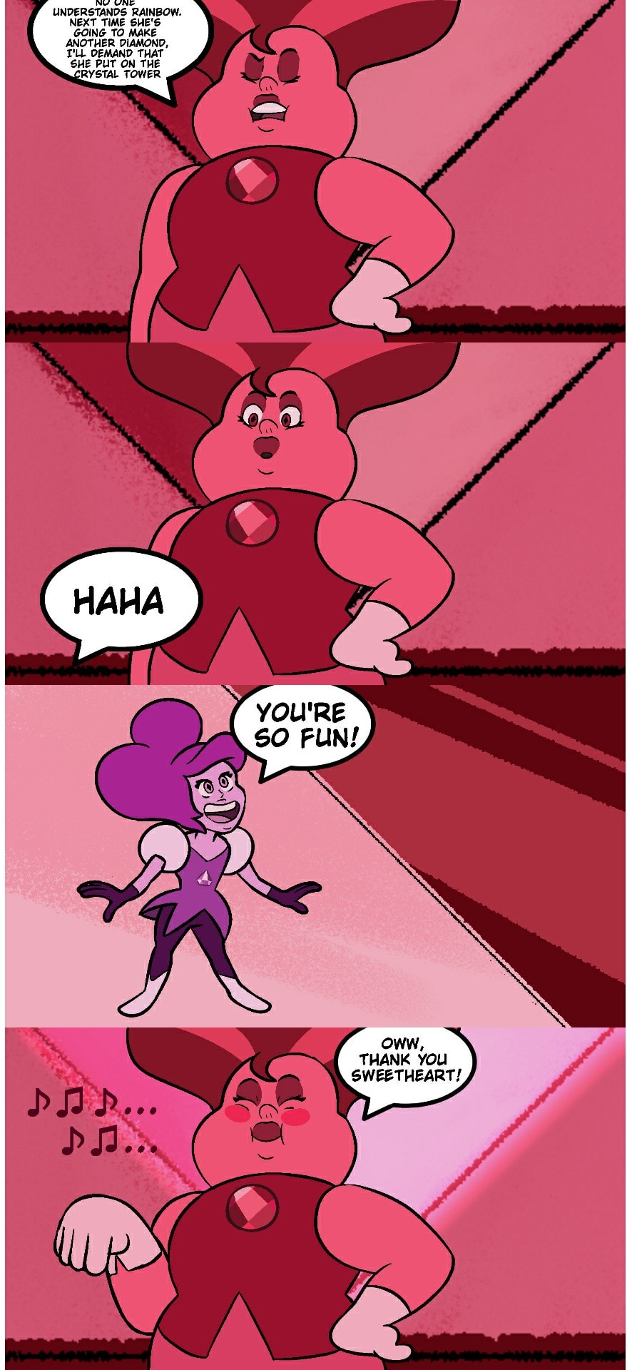 – Desert? At that end of the world? Why not in the Creation Tower like the others? No one understand Rainbow, next time if she's going to make another Diamond. I demand that she put on the Creation Tower.