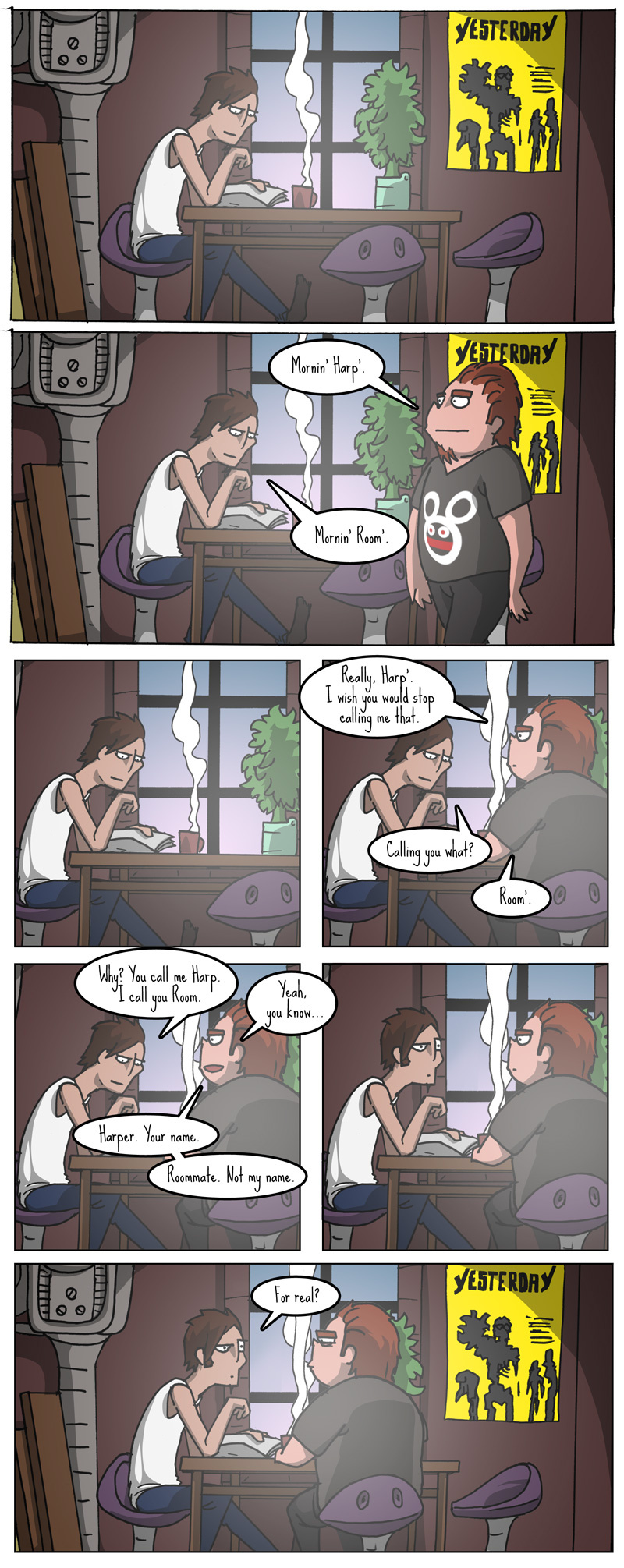 Set in Fictionaria, a land powered by steampower and magique but oppressed by the Lawmaker's monster-hating regime, the DUF, Tale of Fiction tells the adventures of the monster Sneaky, and his human friends Harper and "Room" - dedicated slackers, drug-heads and party-animals. Watch the hilarity unfold as they clash with everything the DUF stands for!