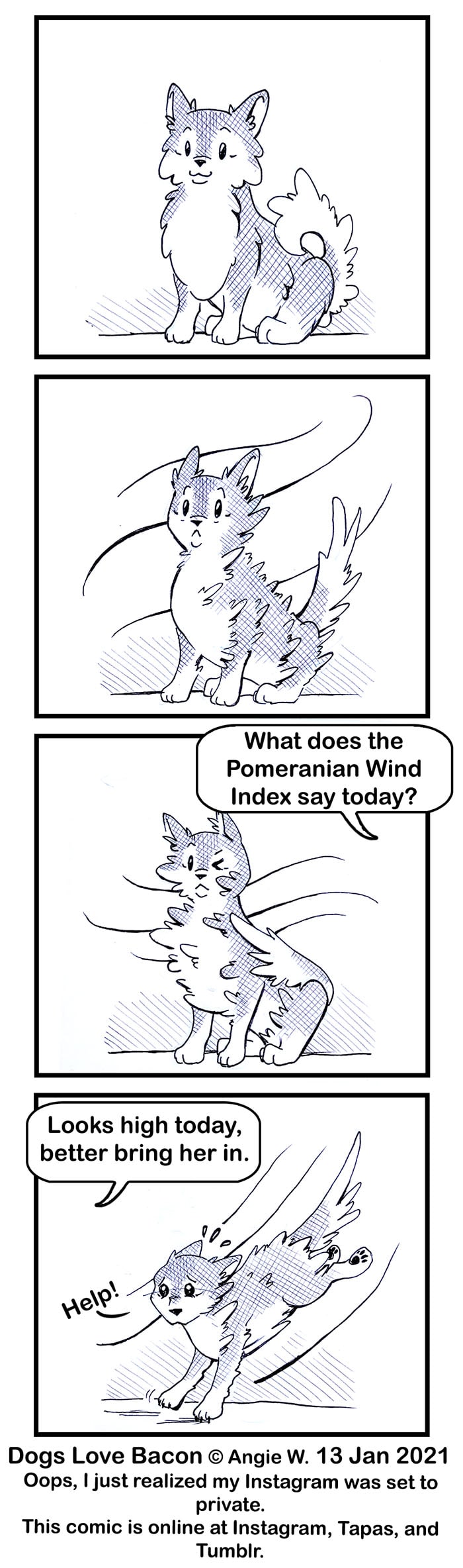 Poor Taz, she is fluffy enough to be used as a wind indicator. Thor has short fur, so he looks the same--regardless of the wind.