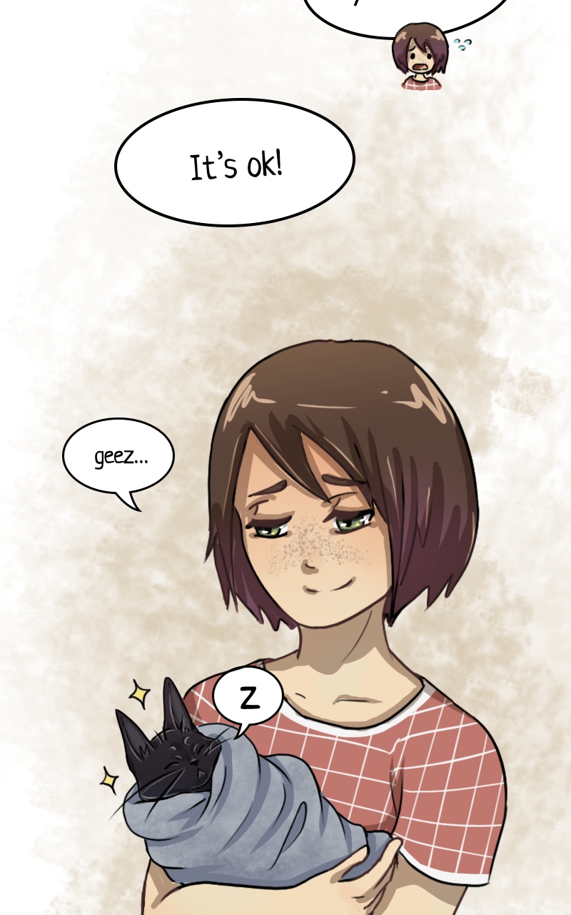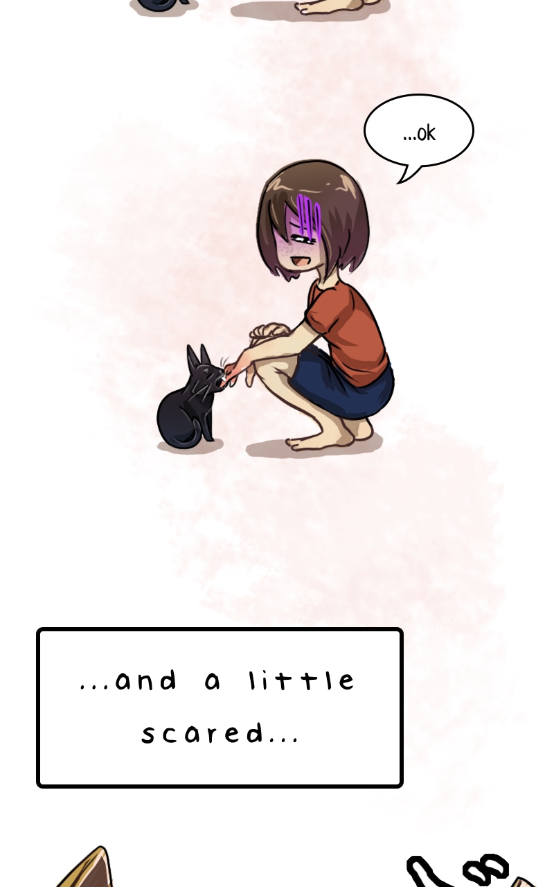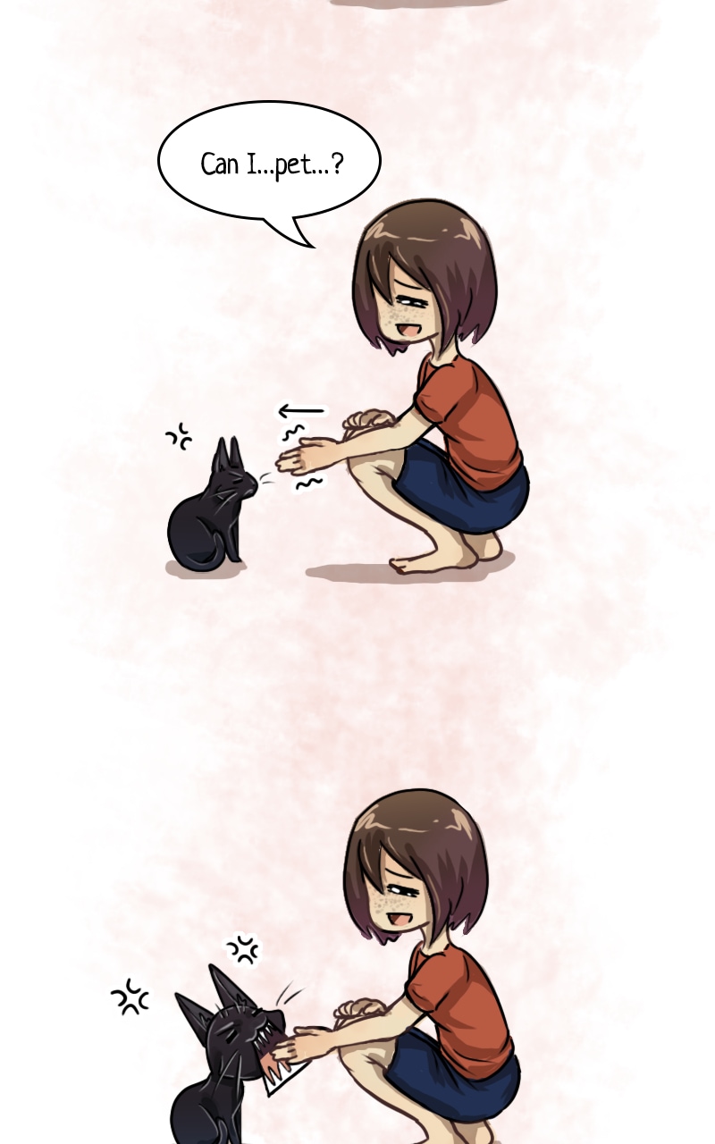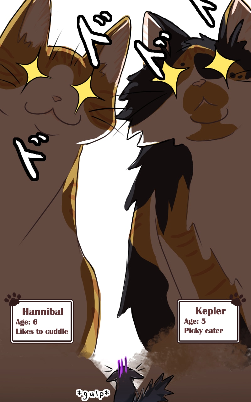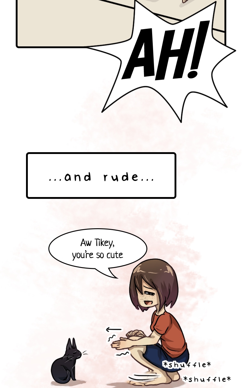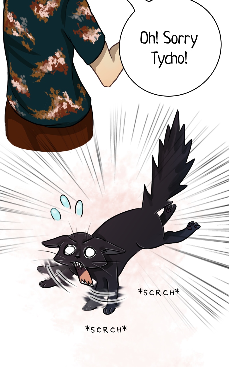 Tycho is too adorable. I love how he's getting more familiar living there with the girl, but it seems like he's still a bit skittish with her other cats.😆 You draw their expressions so vividly, and I love it. I wonder what Tycho plans to do, and can't wait to read more.😁