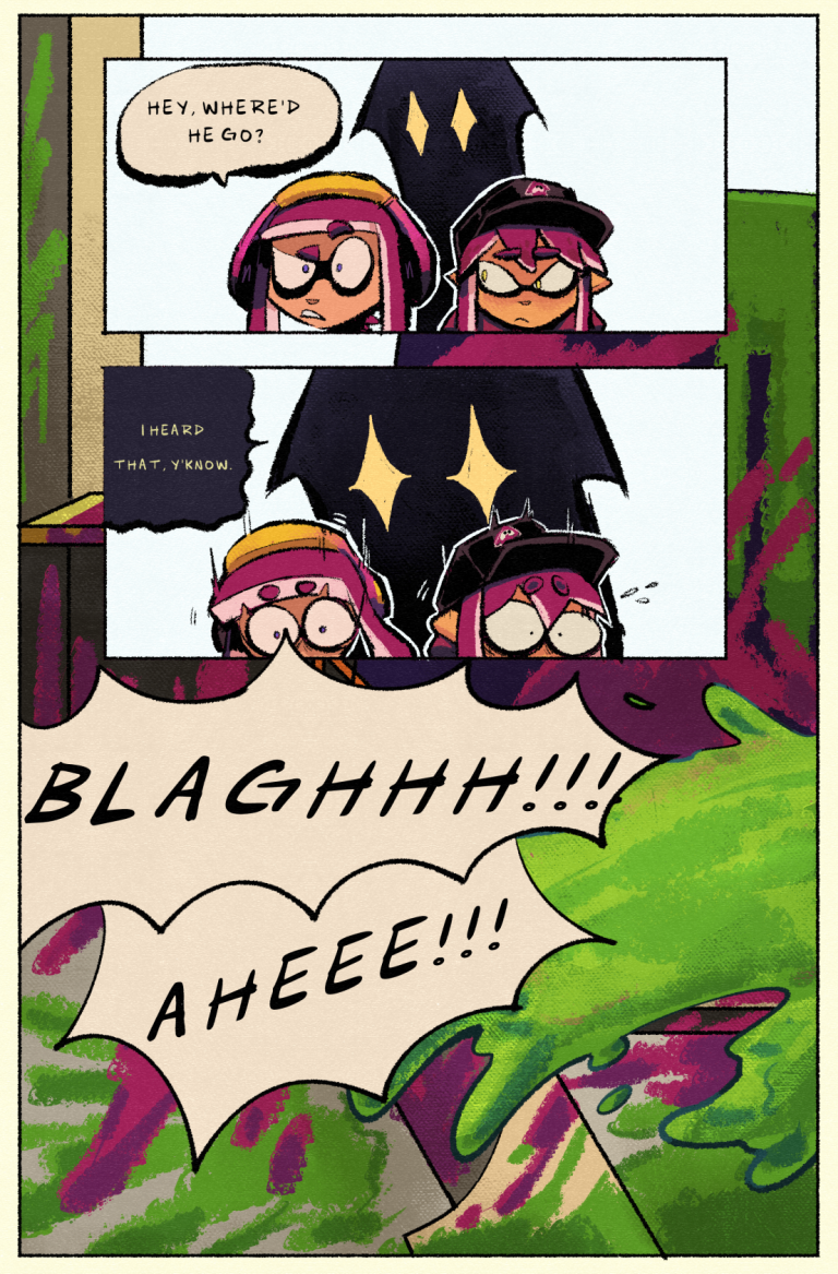 GRINDCORE is a comic created by PUNKRAY. The story is set in the Splatoon universe, and it centers around a cool squid called TKO and his fresh team. Together, they end up in various shenanigans and turf wars, and even some inkciting challenges along the way!