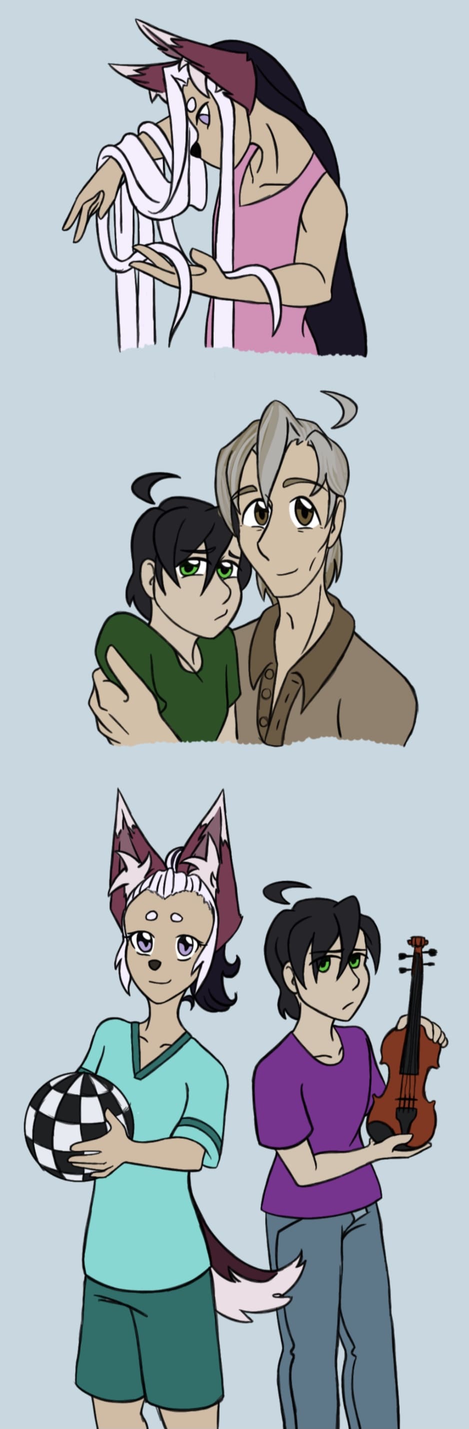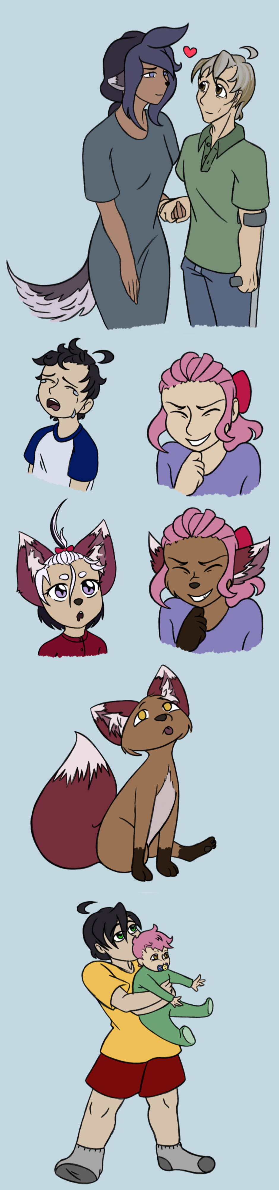 Next are baby pictures of the twins, and some interesting facts about their younger cousin, Joni. Joni, or Johnathan, is half Kitsune. He can change his form anywhere from fully human to fully fox, but usually stays in between because its the most natural for him. He’s three years younger than the twins.