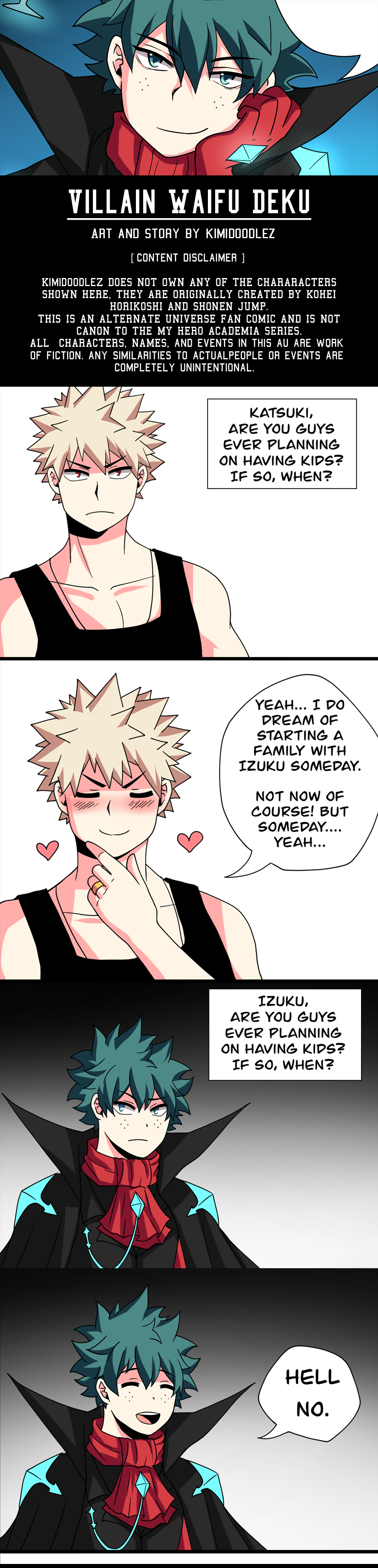 An AU where Izuku is the most feared and powerful villain but is also the house husband of the number one ranked pro hero, Bakugo Katsuki. Izuku makes sure the world is safe for his husband by striking fear and controlling other villains as the ‘Big boss’ of his villain organization.