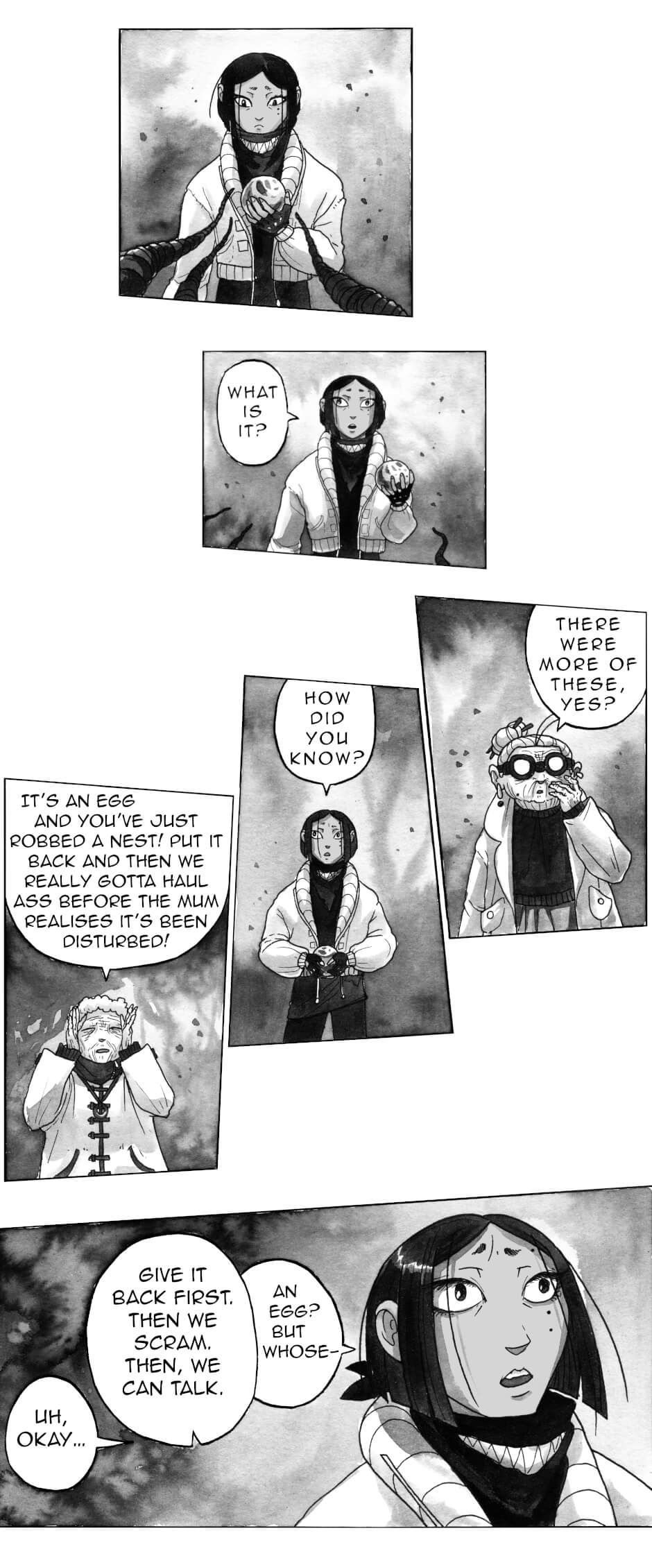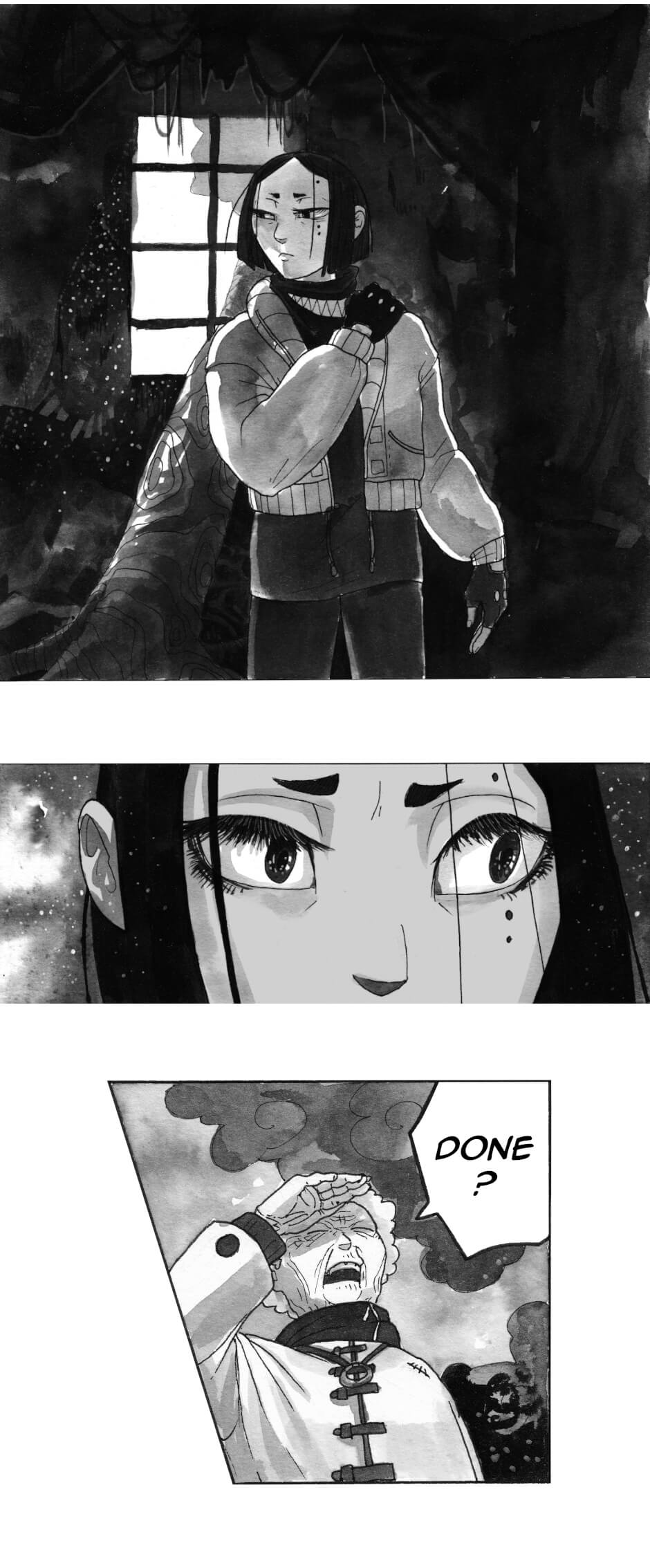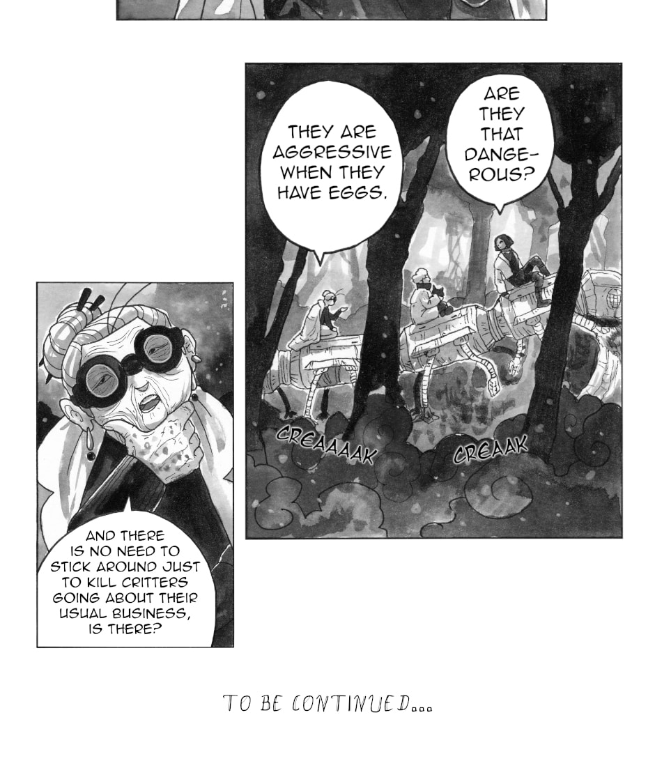 In other words: queer rep galore, badass grandmas, murder, mystery, mechanical worms; all painted in ink by yours truly.
