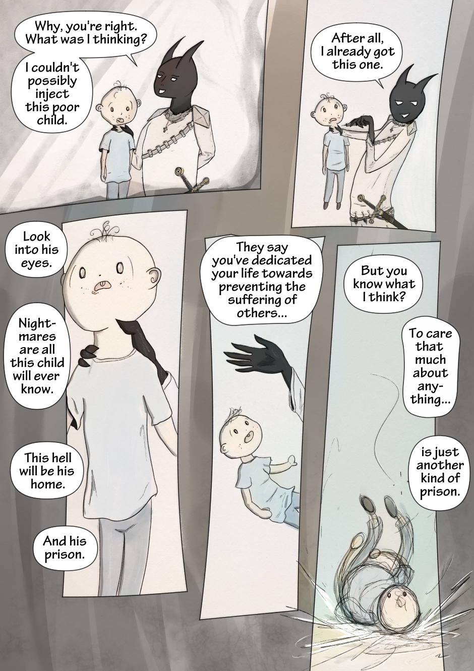 The text size was smaller when I designed this chapter. But right before publishing I discovered all you mobile readers exist. Now the text is chonky but a few panels like these are crammed. Alas.