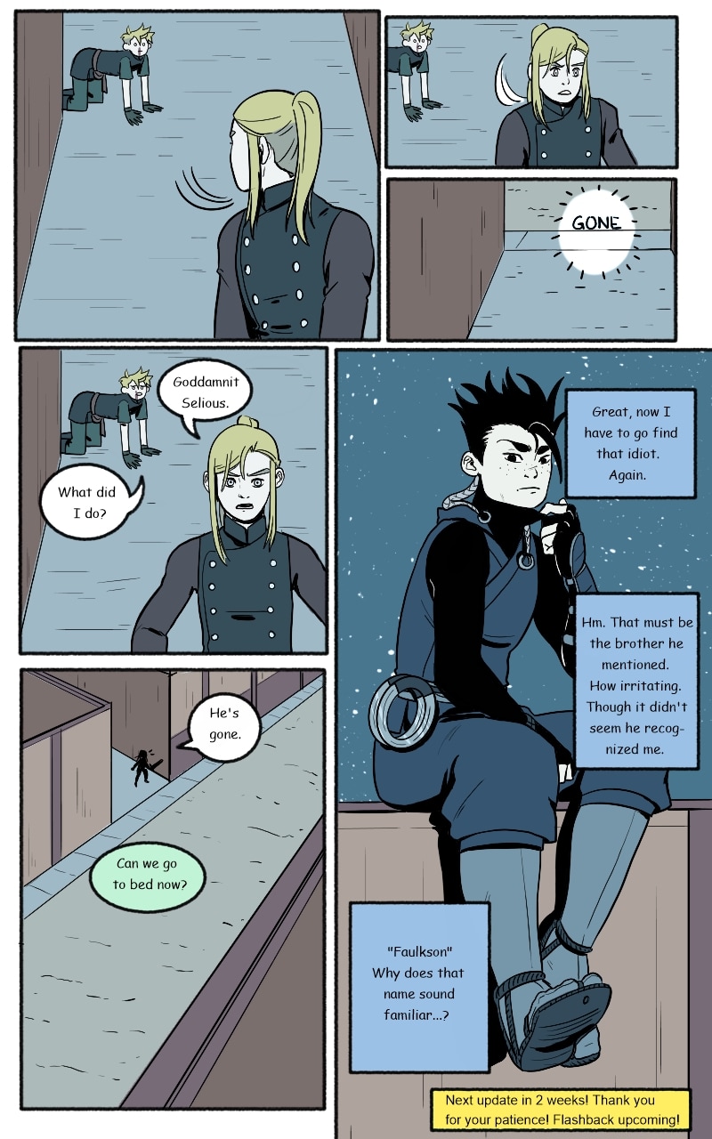 Twin brothers discover their parents dead in their home. Knowing something sinister behind it, the two set off on a journey to find out just who would murder them, and why. The only lead they have is a mysterious brooch left behind, and a storyteller who might be able to give them some answers.