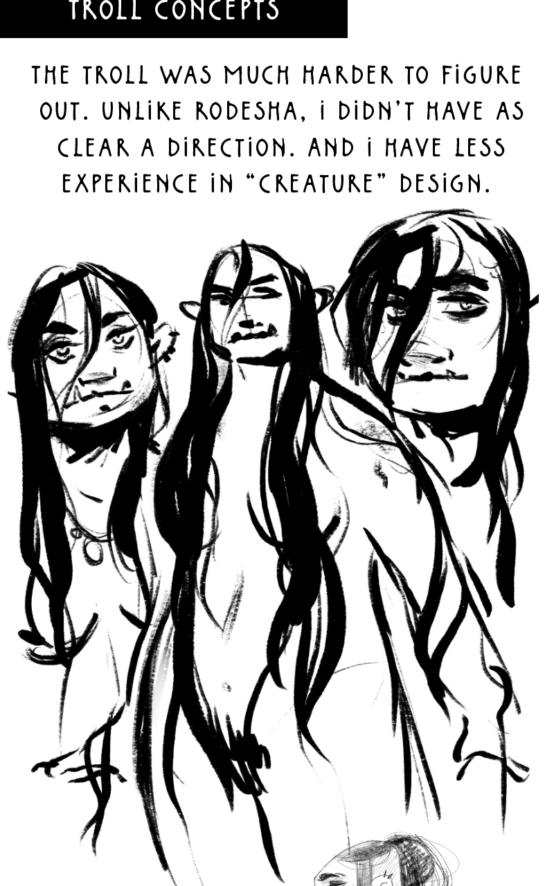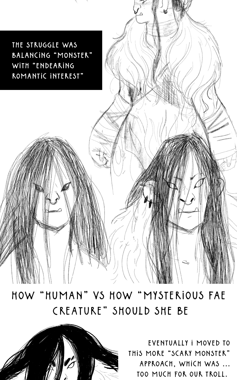 There is so much love and magic and knowledge put in this story and I am SO thankful you shared it with us!! I love seeing the design aspects and all the renditions of the characters, altho I have a special place for the fae in my heart and seeing the different versions you went through with the troll was fantastic!!