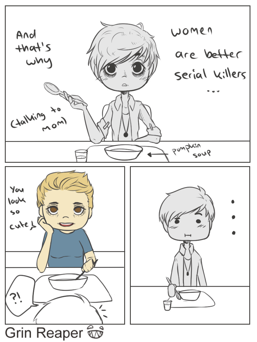I was talking about serial killers ... and then she took a photo of me while eating and thought I wouldn't notice