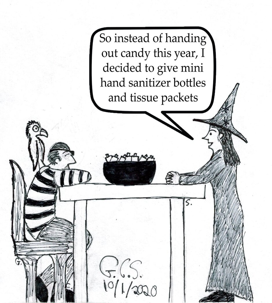 The struggle of what to give out as Halloween treats in the midst of the COVID-19 pandemic. Comic copyright 2020 by Gabriel Connor Salter