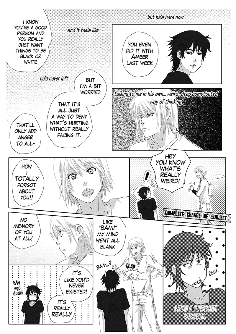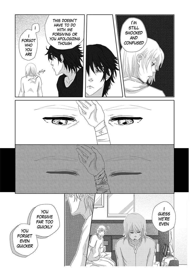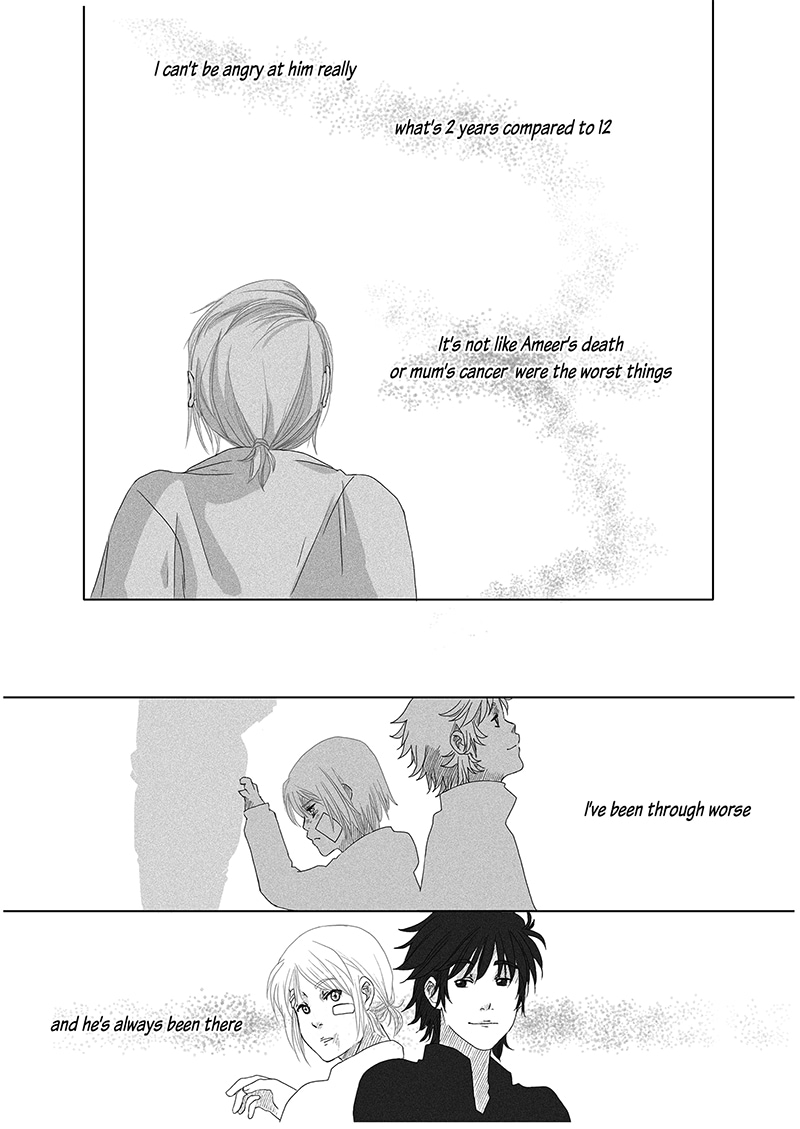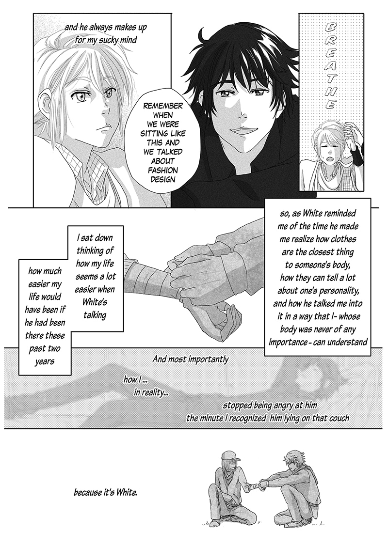 Betrayed by the ones he cherished most, Black left his home after high school and lived away with a friend of his dad’s. In the greyscale life he lived, he longed for nothing but the end of his life, until a person from the past crashes out of nowhere to re-add the contrast Black needs.