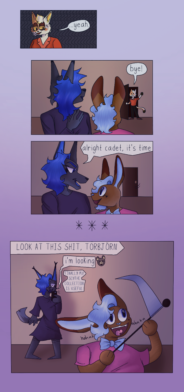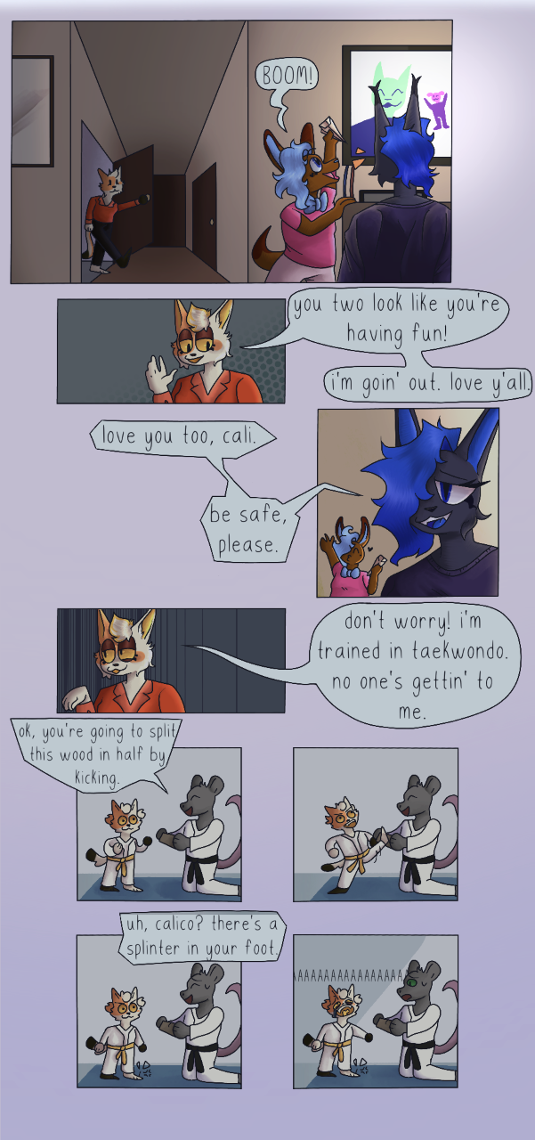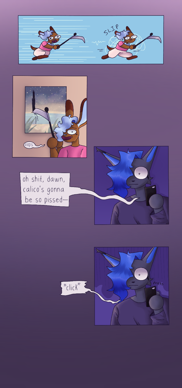cadet and dawn make a whoopsie. calico reflects.