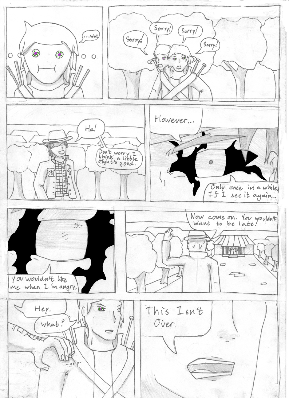 So since very few people (read: 0 people) are actually following this, I figured I'd mess around with my style. So, on the advice of a friend this and all future pages will be in this style--i.e. everything is shaded in pencil and only magic is in color.