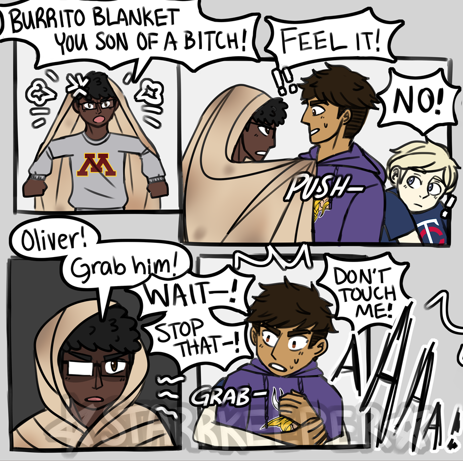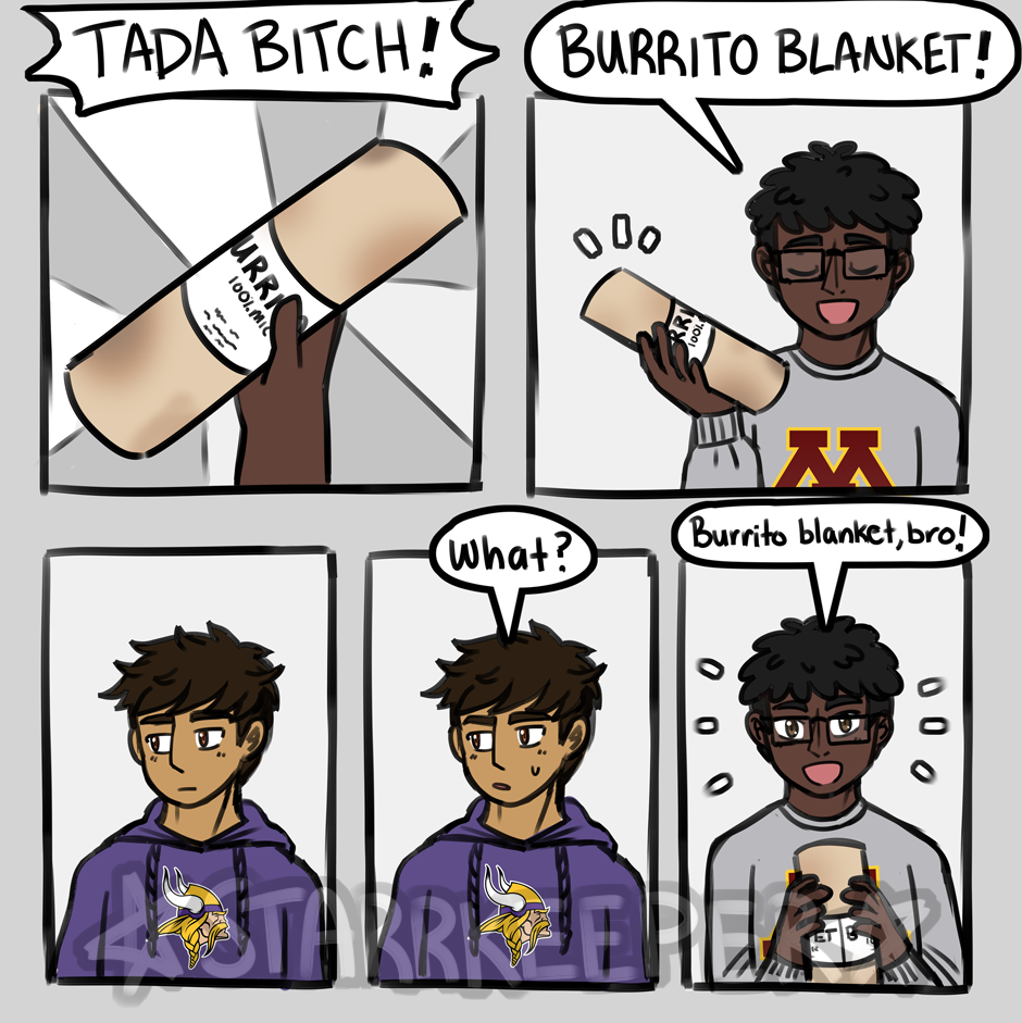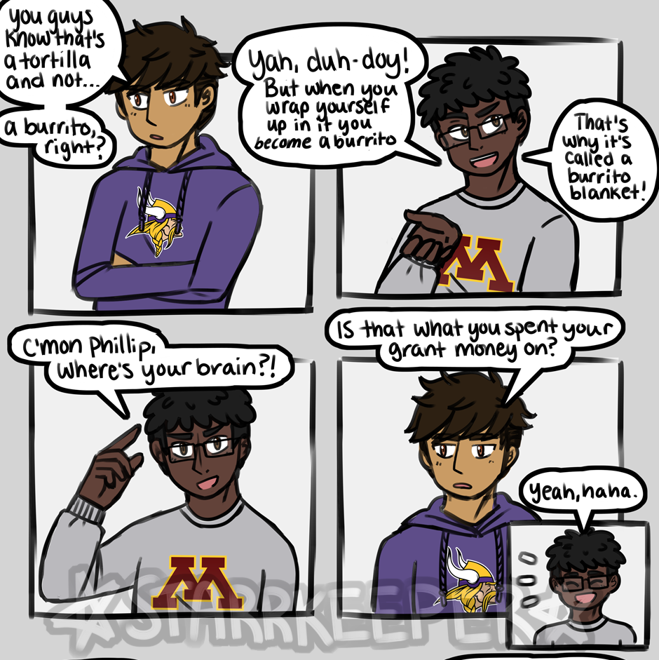 Let's take this time to introduce the most important Atomix Academy character: The Burrito Blanket. -- Cole Diamandis (Fr. - 14) Oliver Tate (Fr. - 14) Phillip Ignacio(Fr. - 14) Burrito Blanket (Fr. - 0)