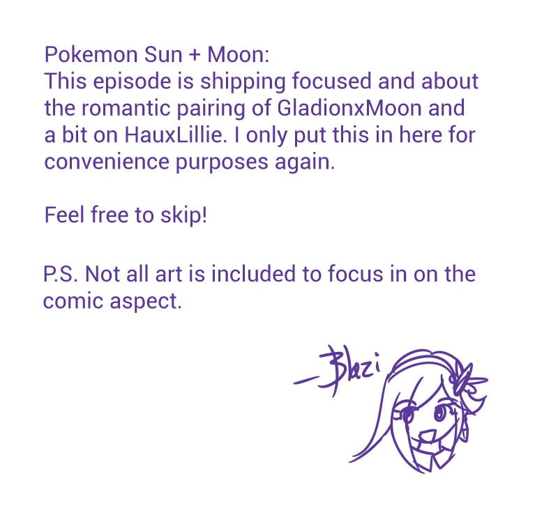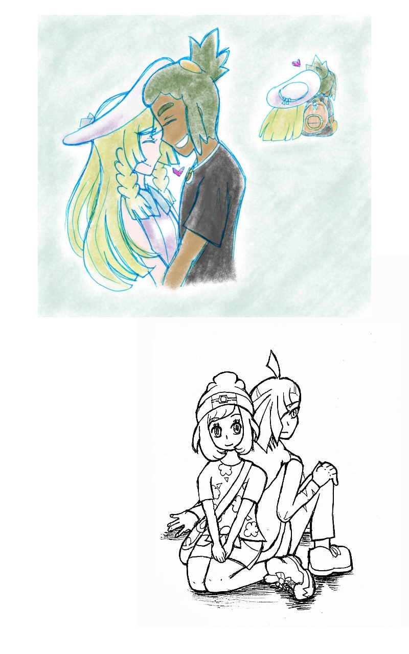 (2016-2017) My OTPs from Pokemon Sun and Moon, Mahinashipping (GladionxMoon) and SnowLilyShipping (HauxLillie). Not all art is included since I want to focus on the comic aspects.