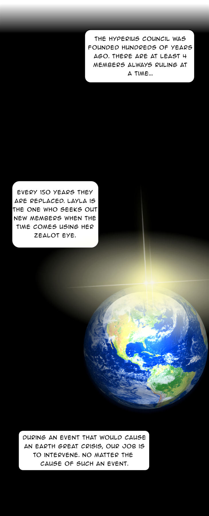 The Hyperius Council was intentionally designed to regulate the use of Mana across all Earth's that exist within ones timeline. Every 150 years new members are chosen, however, when Jason has been picked it is revealed that all the previous members have died only 50 years in. He and many others were chosen out of desperation to combat one person who want's the councils attention, Indrus Asmodius.