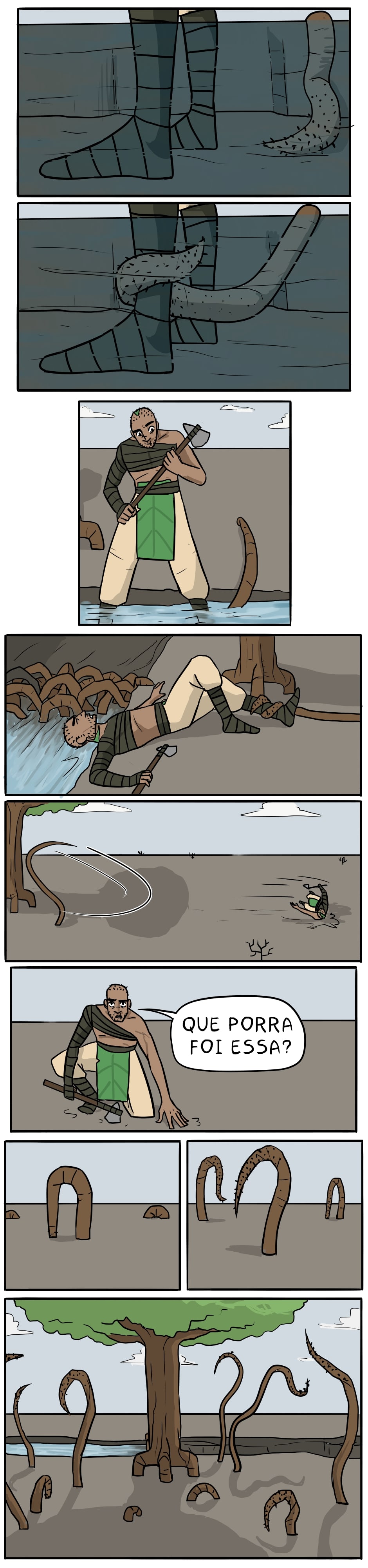 Oh, não! Tentáculos! Cuidado! De acordo com os hentais, eles vão... Aaahh, não. Pera... são só raizes assassinas. Tá suave.