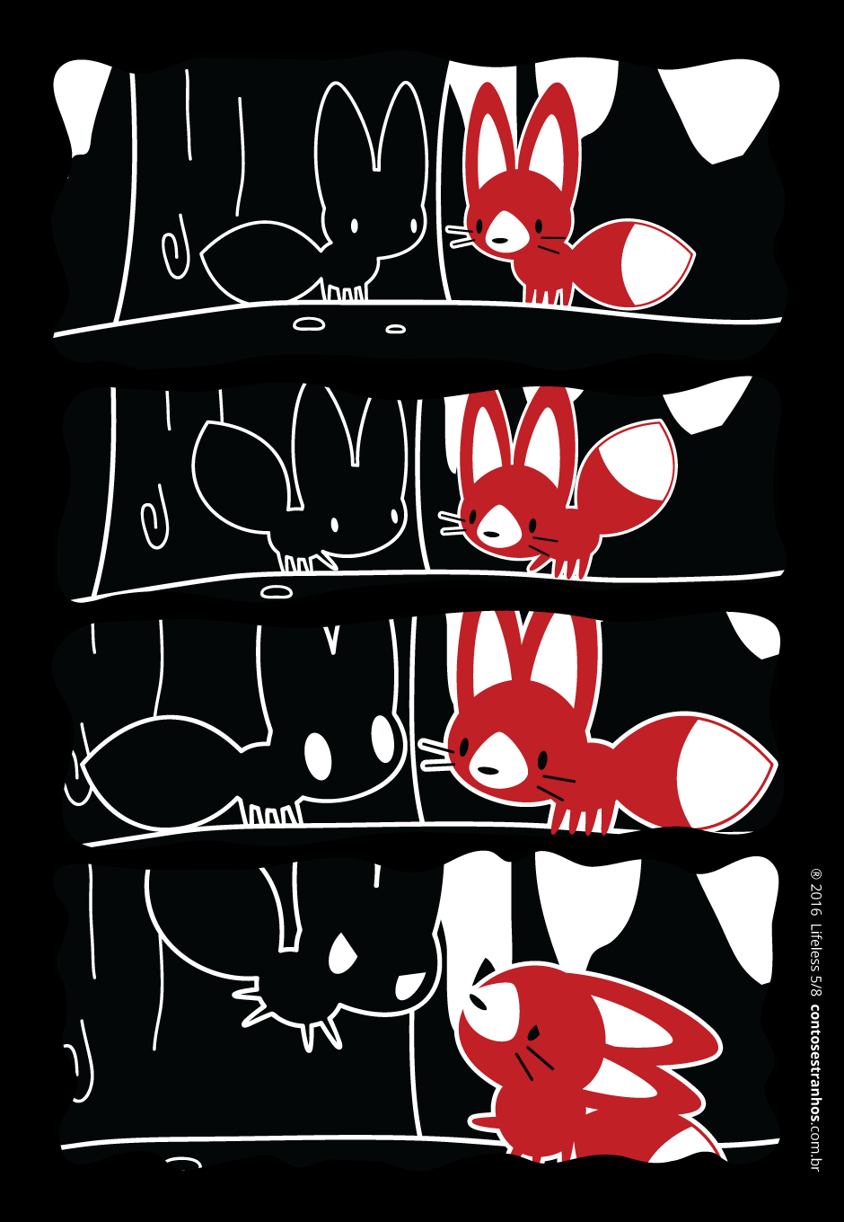 Unusual stories, brief as the breath of a castaway and unsettling as the look of a hooded stranger on the subway. Contos Estranhos (Weird Tales) brings short histories comics of fantasy, horror, science fiction and, why not, life's own drama, in which nothing is what it seems, and the bizarre and the mystical flirt openly. Recline at the armchair and have fun.