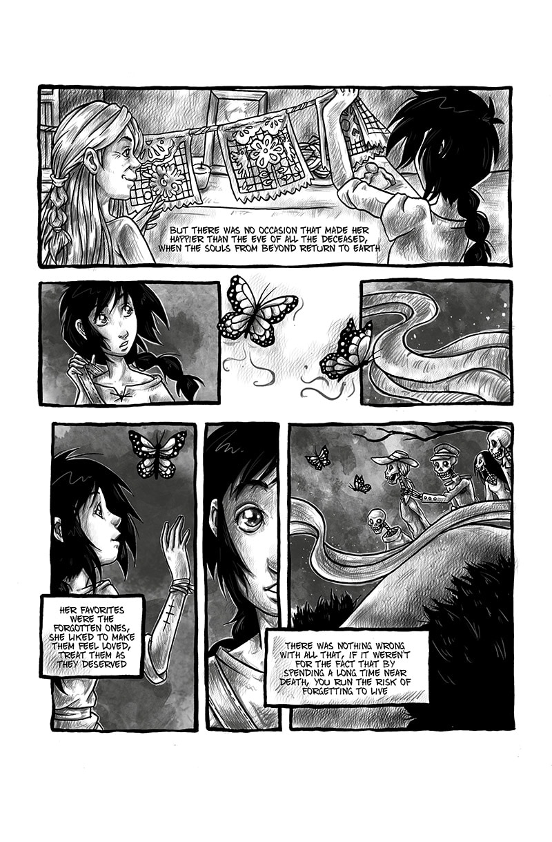 The story of Yunuen, a girl with a very special gift; a really big heart... oh yeah, and the ability of seeing the dead souls. Her friendship with a cursed old man who can't die, a skeleton haunted by his past and an ancient darkness being with unfinished business with both of them, all under the Day of the Dead tradition.