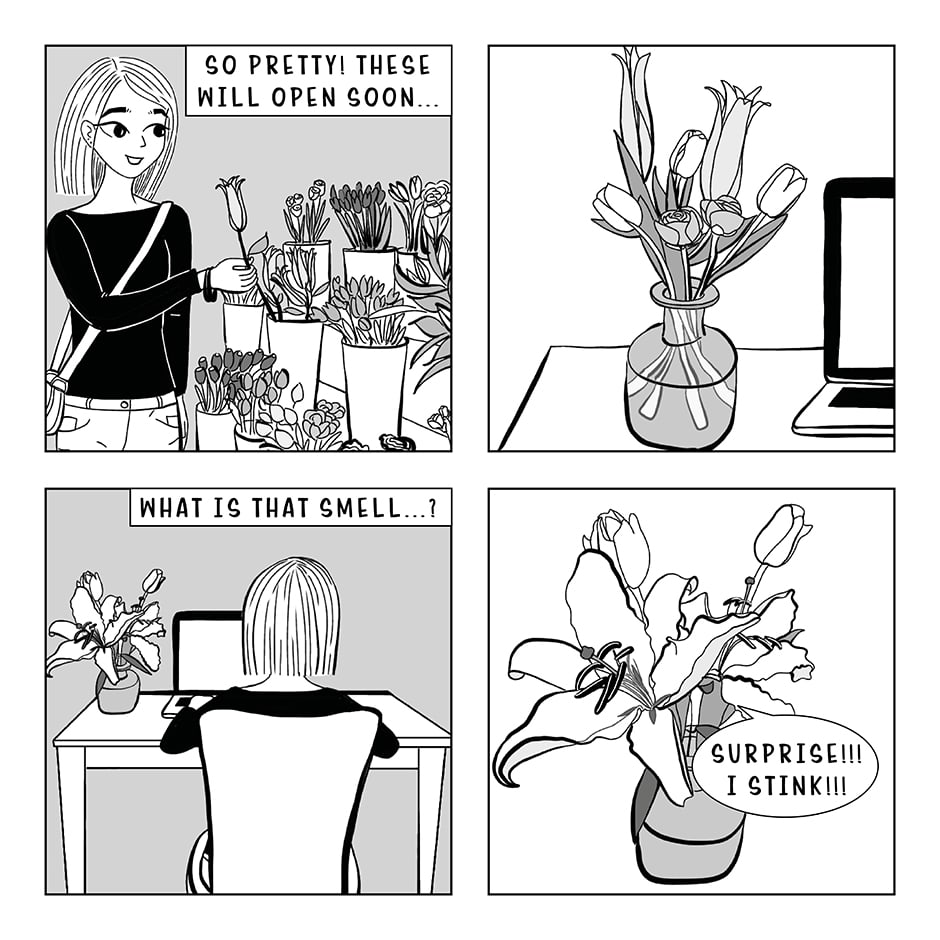 I like buying flowers from time to time to brighten up my home, but honestly don’t know much about flowers and mostly choose them by shape and color.... so safe to say i did not expect the stinky surprise i got when the flowers opened up. Bees are into some weird stuff honestly
