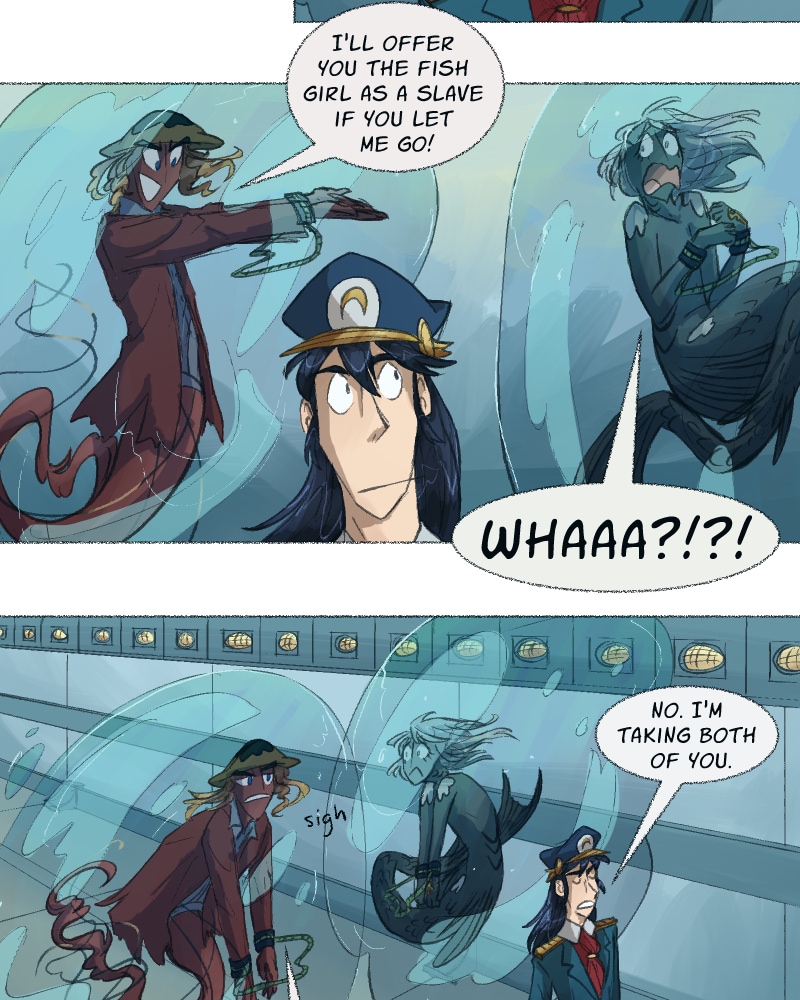 In this ocean adventure comedy, Pezci is an anxious fish girl that has to learn how to fight for herself when life screws her over and a raging maelstrom destroys her home. Unwillingly bestowed with an unusual key, Pezci must make the journey to the legendary Light Tower where paradise is promised to those who seek it. Will she be able to make it when there is so much competition for the same chance at happiness? Updates biweekly on Sunday