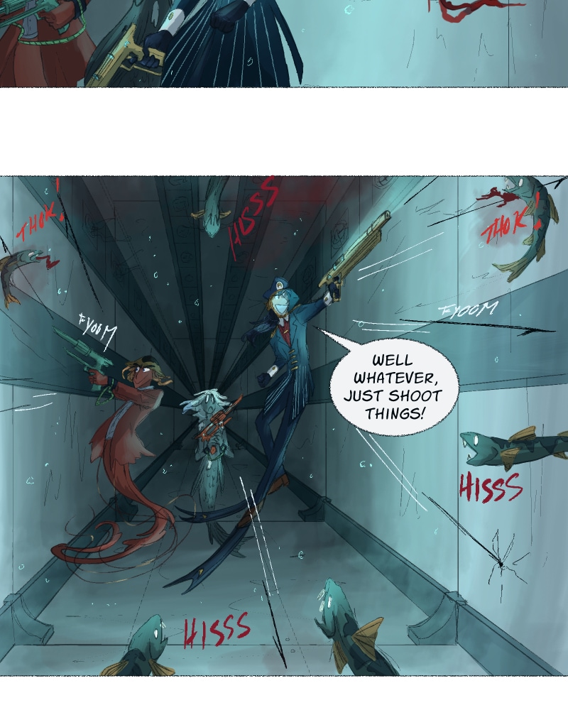 In this ocean adventure comedy, Pezci is an anxious fish girl that has to learn how to fight for herself when life screws her over and a raging maelstrom destroys her home. Unwillingly bestowed with an unusual key, Pezci must make the journey to the legendary Light Tower where paradise is promised to those who seek it. Will she be able to make it when there is so much competition for the same chance at happiness? Updates biweekly on Sunday