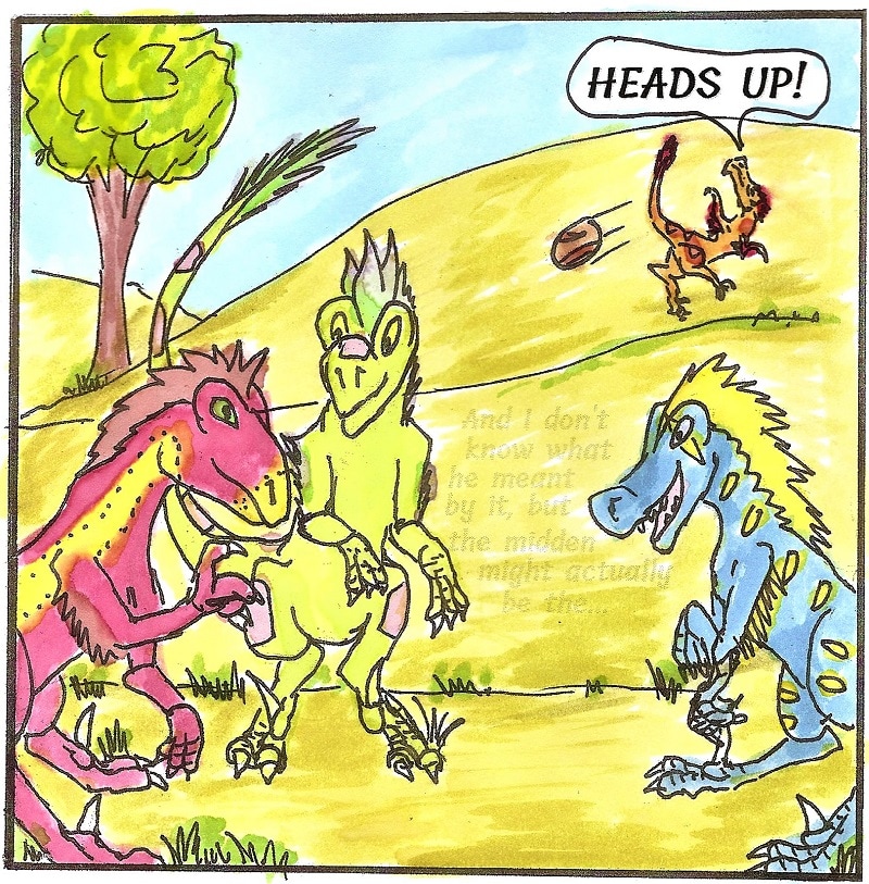 An epic adventure set 65 Million years in the past! Mankind existed for tens of thousands of years before language and civilization developed. This species of raptors were in a similar state: intelligent but primitive. Then, pushed by outside influences, they developed a culture far in advance of their natural path. Now a group of young raptors' curiosity about the history of their people will lead them to adventure, danger, revelations, abilities, and a journey they could never have imagined.