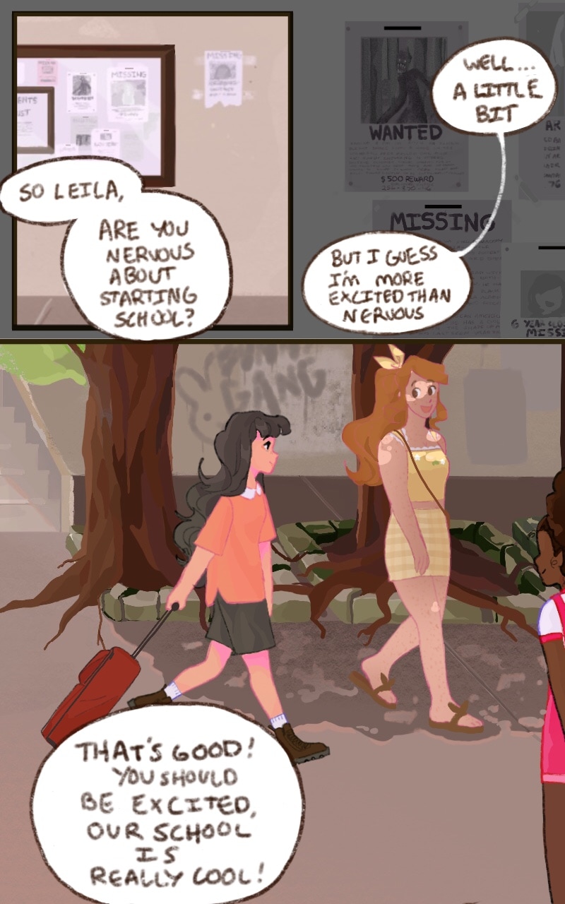 Leila’s a typical highschooler; she has a severe case of resting bitch face AND shadows on the wall are trying to kill her. Say, how do teachers expect 15 year olds to destroy monsters with sharp claws and hellish curses all on their own anyway? There’s a good chance she might die before she graduates, but Leila and her friends are trying their best to make it through and enjoy high school life.