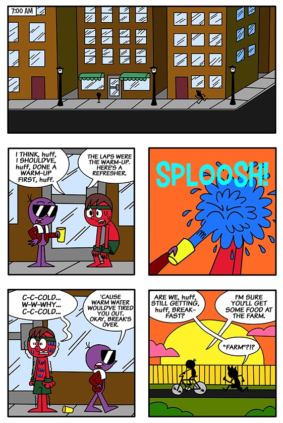 Grape coaches Apple to pass the pacer test at gym class.