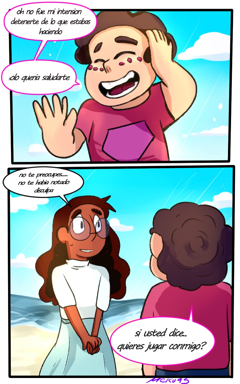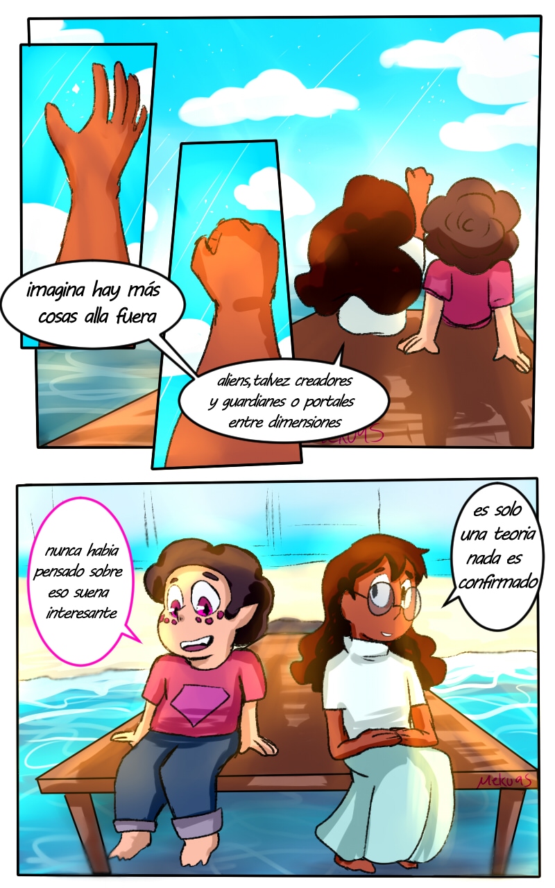 a todos los hispano hablantes bienvenidos despues de casi mas de un año de estar publicando e decidido a comenzar a publicar mi comic en español para los que tengas problemas de entender mi pobre ingles asi que bienvenidos a este gran universe alterno llenos de demonios y criaturas donde nuestro querido steven es una ser mitad humano y mitad demonio y que ha hecho un contrato con connie maheswaran