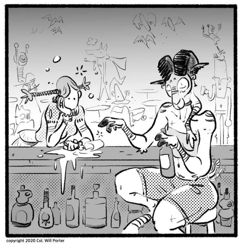 In a world where every dungeon holds untold treasures and the voices in the woods tempt the bold and foolish with tales of lost gods and eldritch magic, there is a place where the undead can unwind, a beholder can stop looking over her shoulder, and a goblin and a werewolf can get real drunk together. Unfortunately, humans have a way of stumbling in and wrecking a perfectly good time with their adventuring, politics, and I'm just going to say it, anthropocentric privilege.