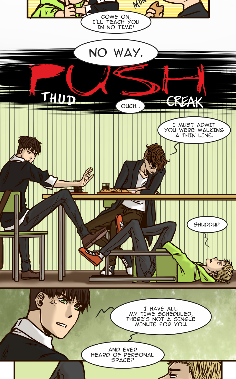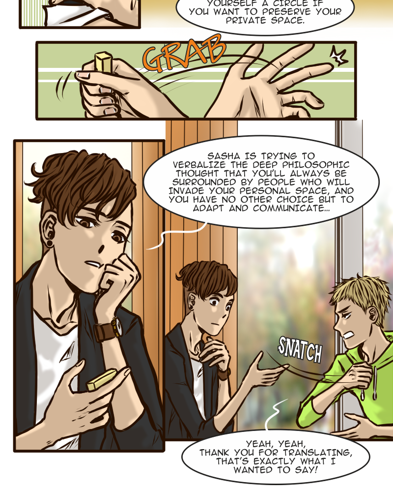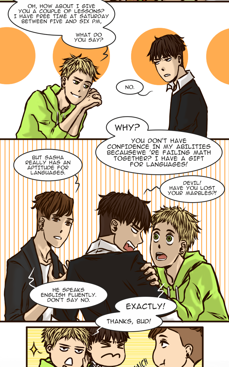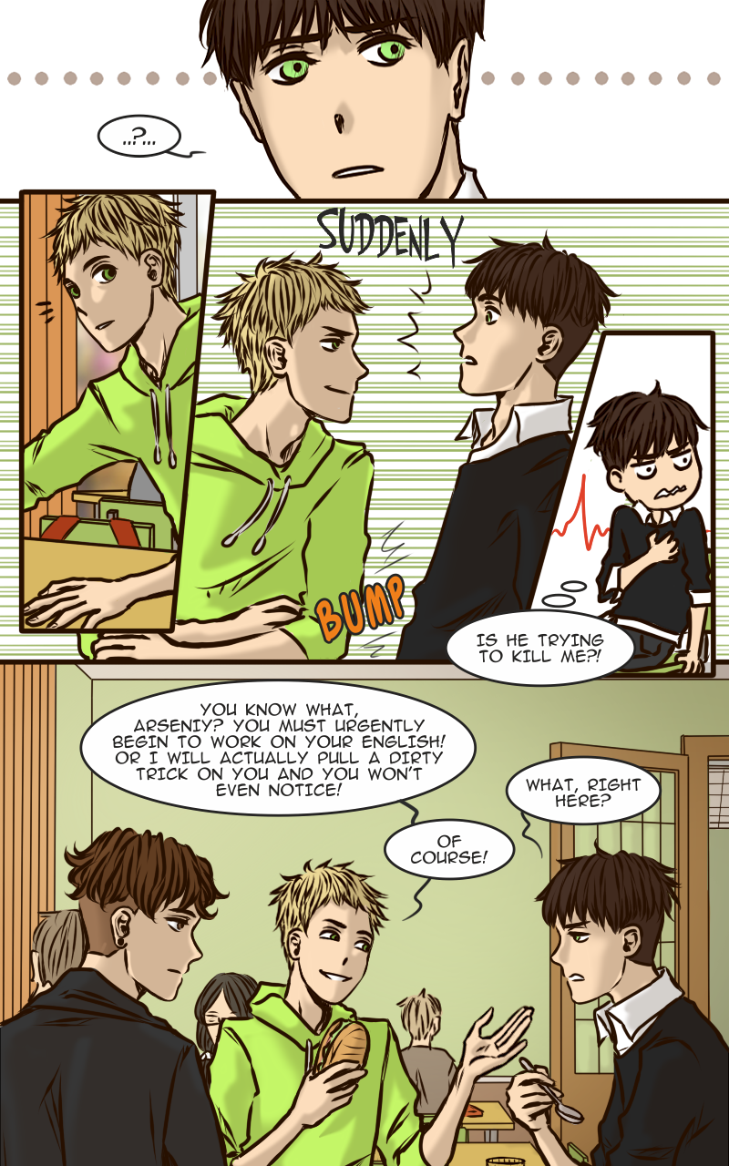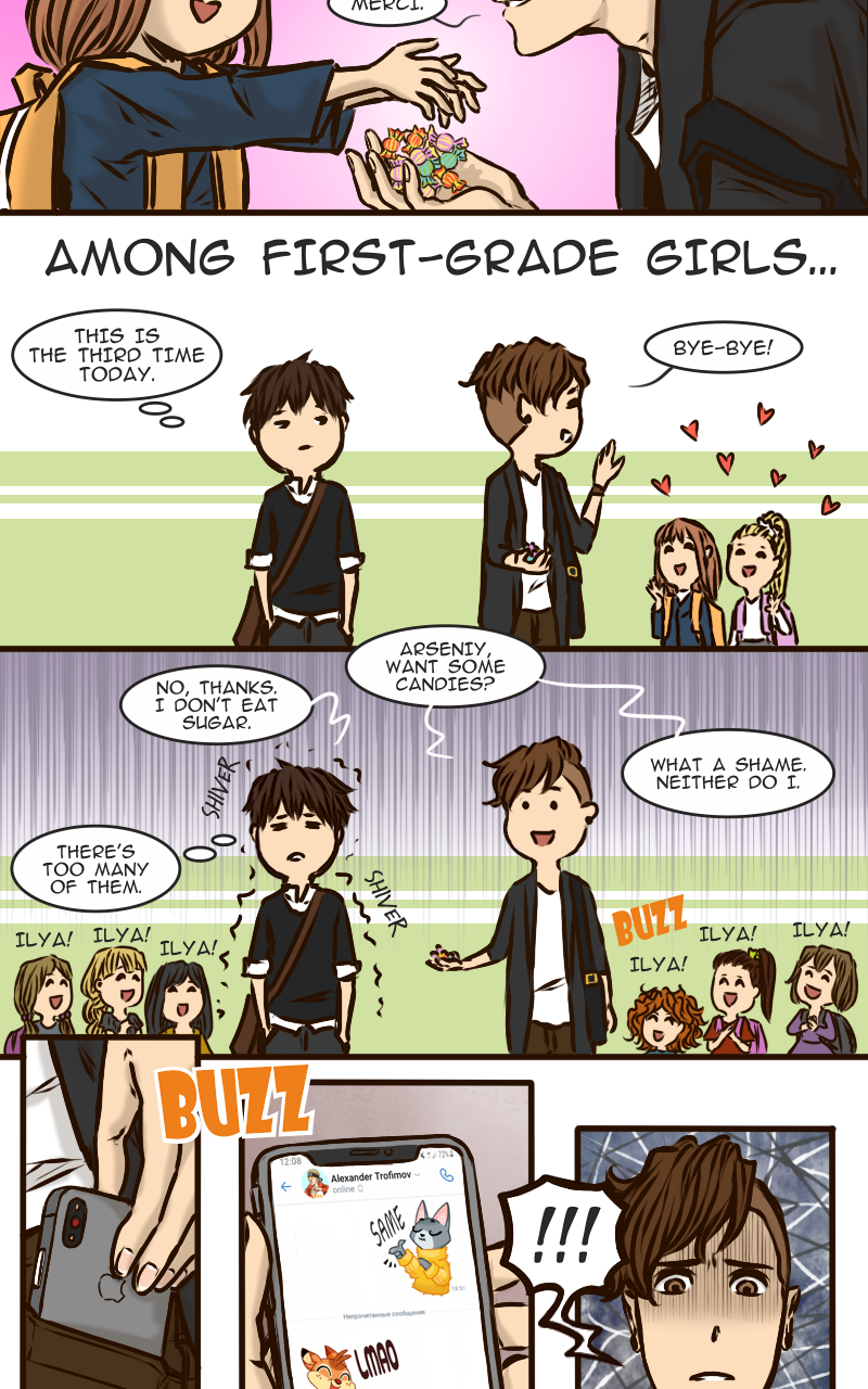 Arseniy can’t boast of having many friends, certainly not when all his classmates diligently avoid him. And it is not surprising – who would want to hang out with such a sulky guy? Apparently no one… except this new classmate Zhenya who suddenly drops into his cloudy life with a radiant smile and attempts to befriend him. How is Ars supposed to resist such a persistent sunbeam?