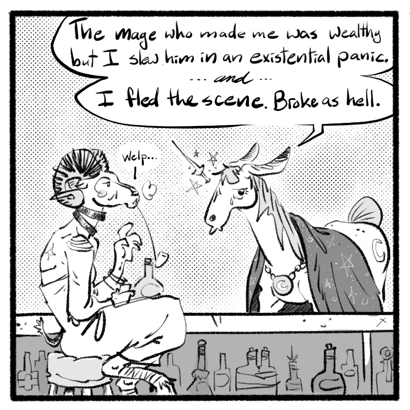 In a world where every dungeon holds untold treasures and the voices in the woods tempt the bold and foolish with tales of lost gods and eldritch magic, there is a place where the undead can unwind, a beholder can stop looking over her shoulder, and a goblin and a werewolf can get real drunk together. Unfortunately, humans have a way of stumbling in and wrecking a perfectly good time with their adventuring, politics, and I'm just going to say it, anthropocentric privilege.