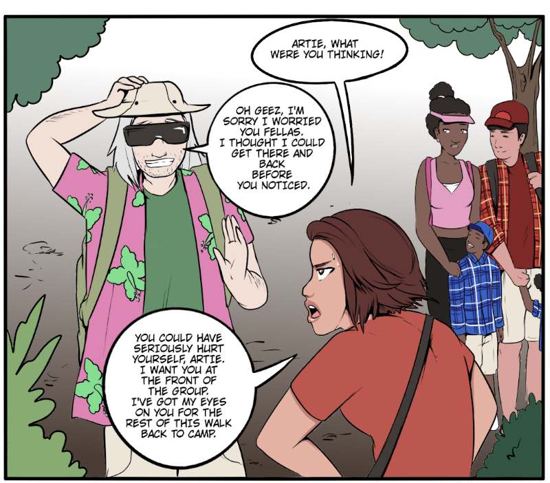 Doesn't seem like Artie was up there long but what exactly was it he wanted to do up there? Also, this page brings one of my favourite Karen moments where Ash finds herself seriously wondering what Artie was hiding in his bag and Karen just responds with "Trailmix" her character is quickly becoming one of my favourites.