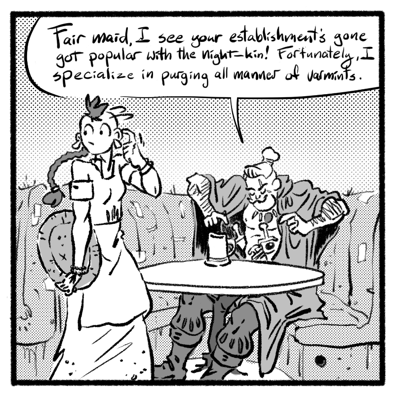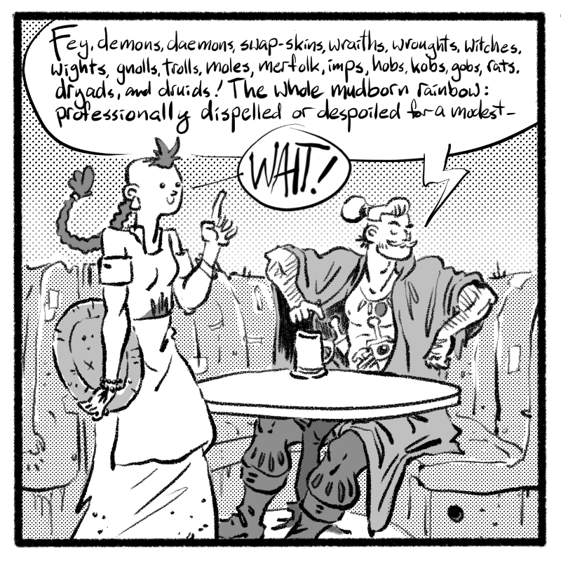 In a world where every dungeon holds untold treasures and the voices in the woods tempt the bold and foolish with tales of lost gods and eldritch magic, there is a place where the undead can unwind, a beholder can stop looking over her shoulder, and a goblin and a werewolf can get real drunk together. Unfortunately, humans have a way of stumbling in and wrecking a perfectly good time with their adventuring, politics, and I'm just going to say it, anthropocentric privilege.