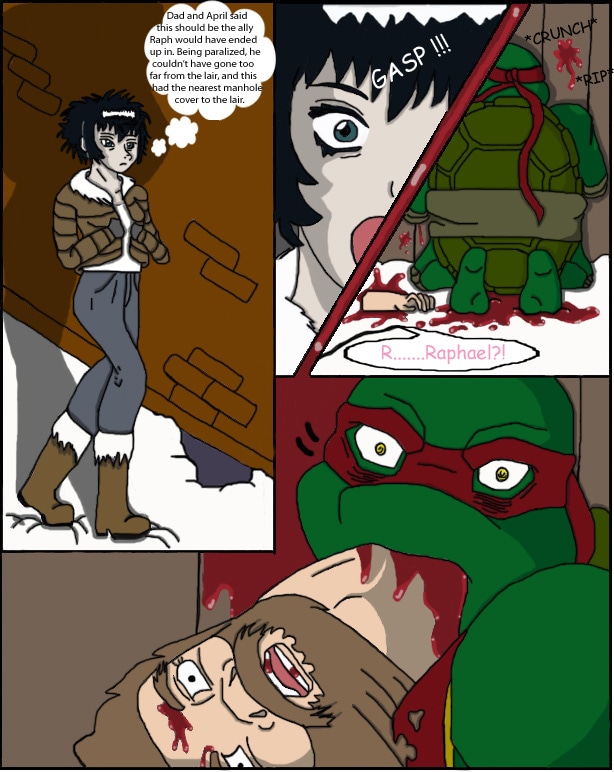 Warning: Gore When Casey's adopted daughter Shadow ((A character from the original comics)) joins the search for Raph, she stumbles upon something horrible.