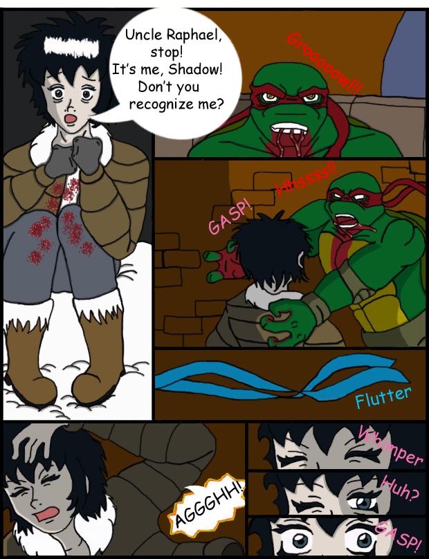 Warning! Mild Language, blood, and violence. This is a nonprofit fan comic/doujinshi. Raphael runs across a Purple Dragon whom at first he thinks is raping a young woman only to find out that he's eating her. It doesn't take too long into their fight that Raphael realizes that his opponent is not a cannibal, but the first in a Zombie outbreak. The dead of winter is fixing to take on a whole new meaning as it gets a lot colder.