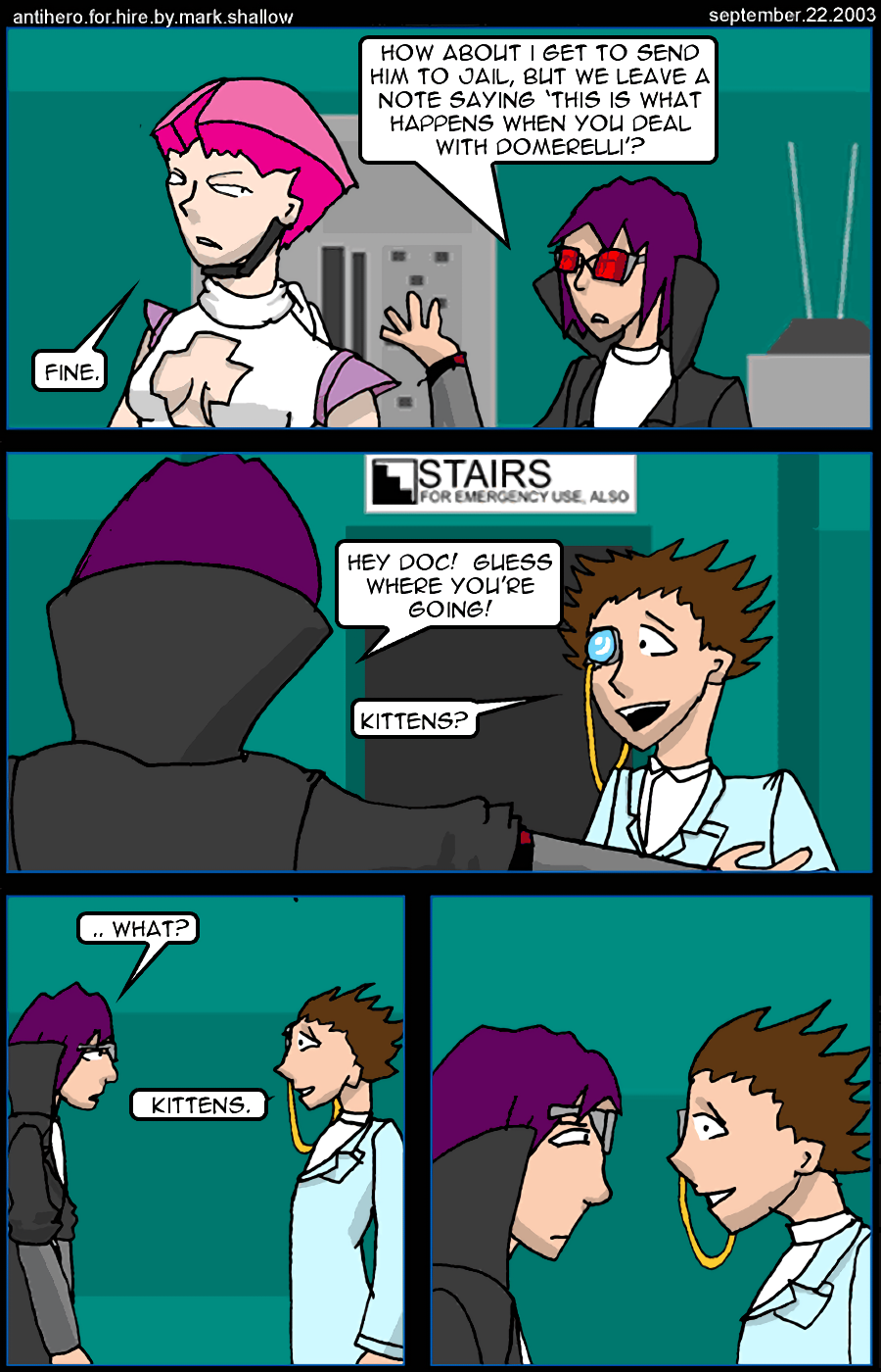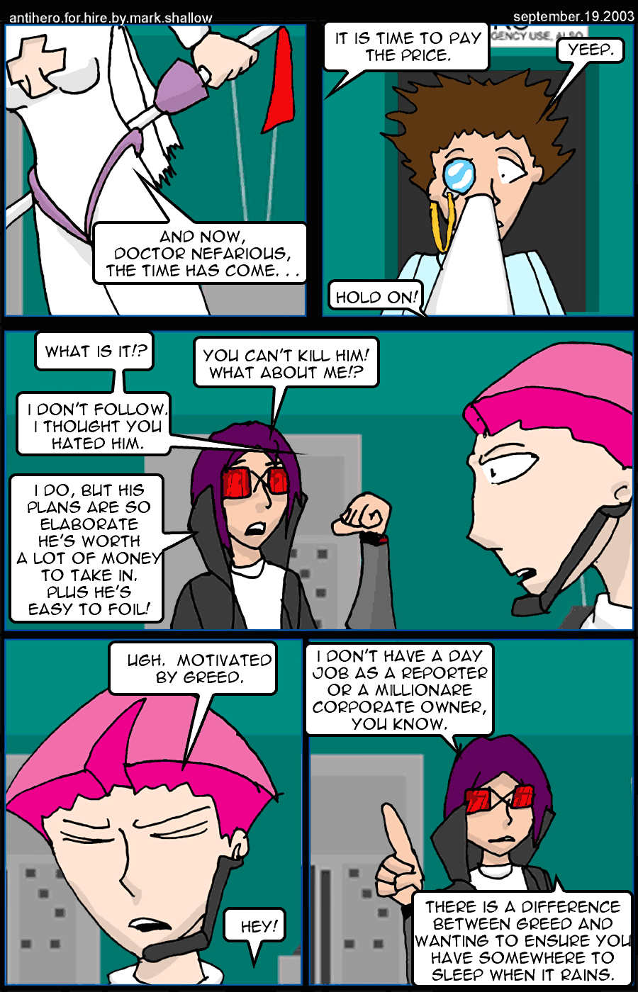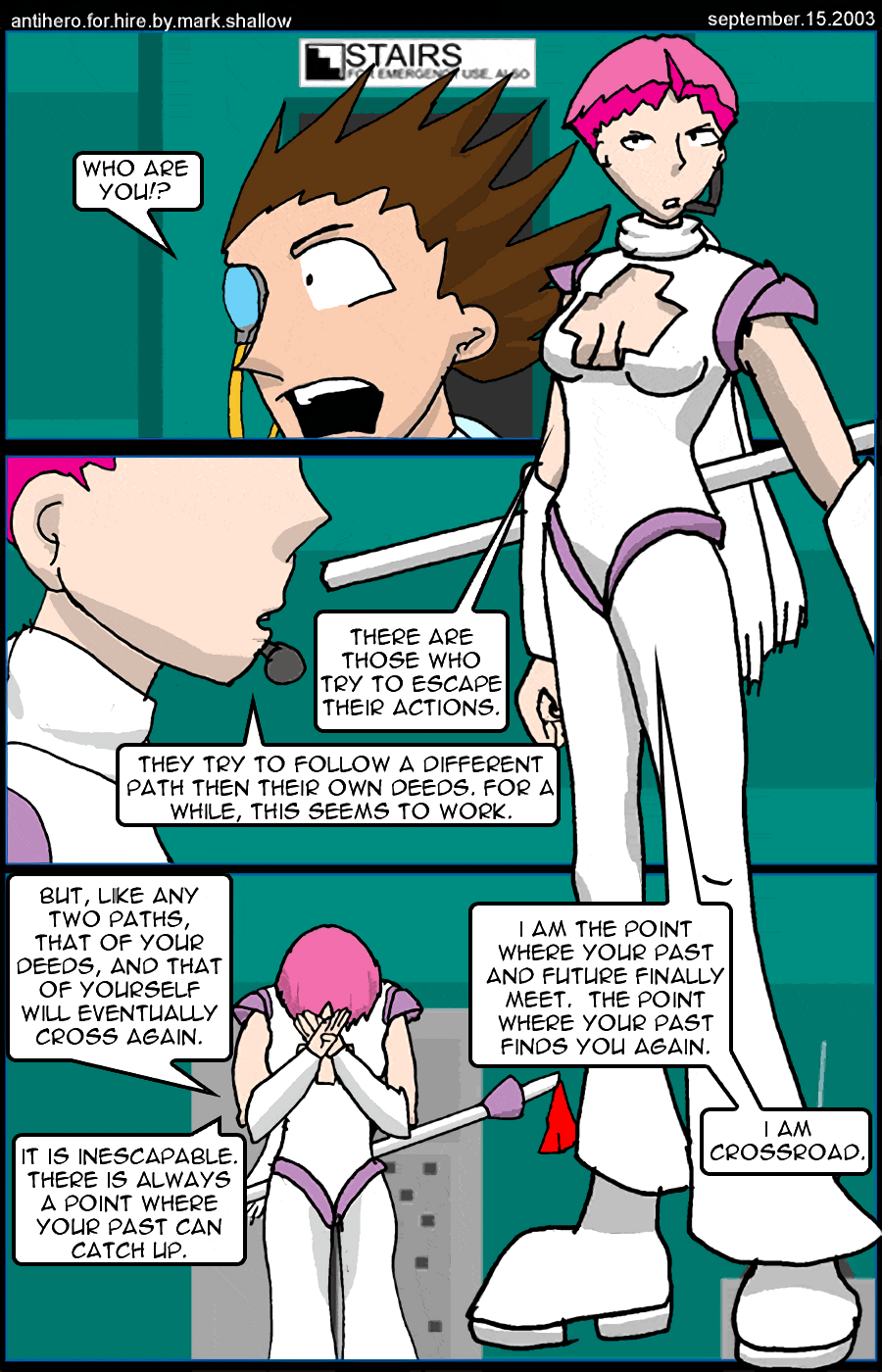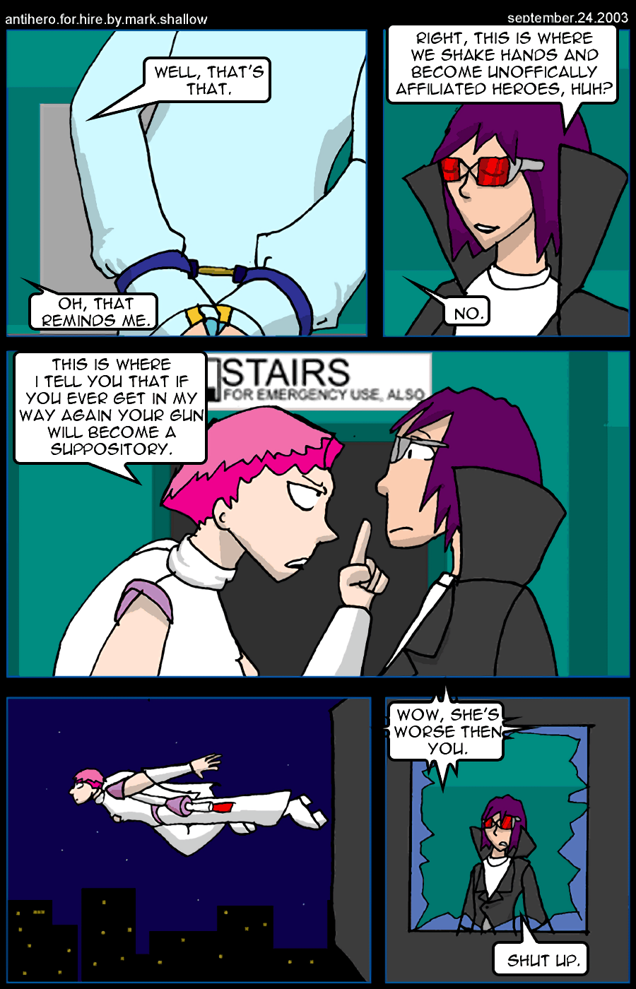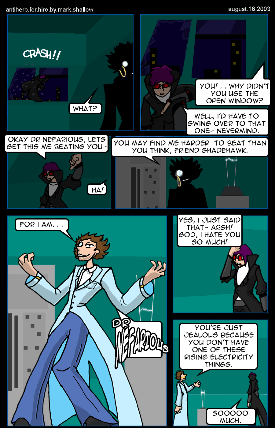 An even anti-er anti-hero is revealed: Crossroad, who is not above cold blooded murder. Shadehawk kills people too but it's in warm blood.