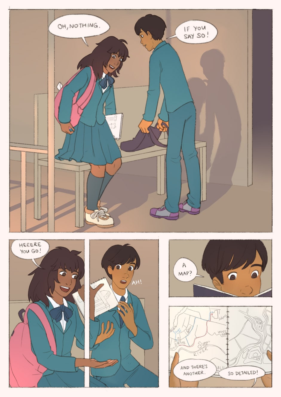 Pala and Fen bump into each other on the school grounds. Before they know it, they're exploring their home island together. As they delve into the island's hidden corners and their friendship grows, they each begin to learn that the other is hiding a multitude of troubles from the rest of the world.