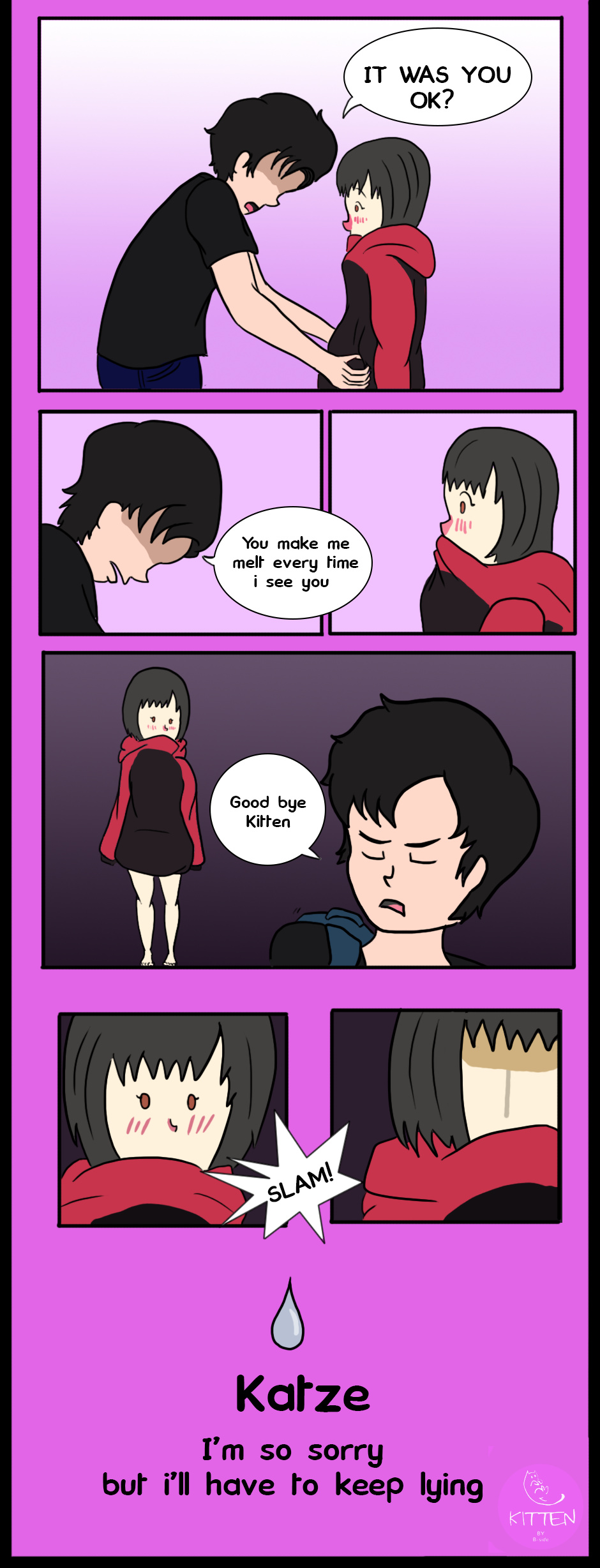 Katze is a low profile boy who nobody listen to, and he meet Kitten, a young girl helplessly in love with him. Katze is affraid of relationships but Kitten never gives up, and she continues using her "unusual" methods to convince him to be her boyfriend.