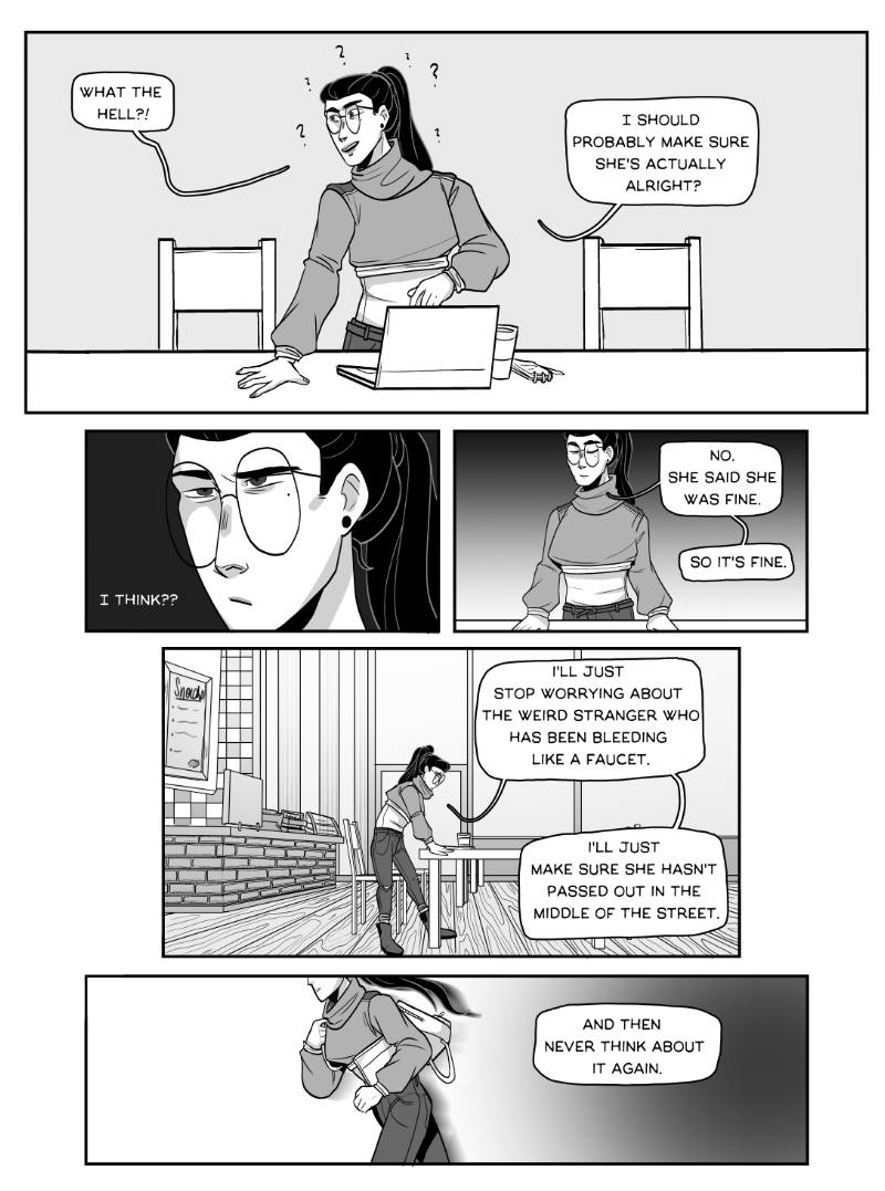 Awry is a character driven story centering around Alva who, after coming into contact with strange alien matter while trying to help out a random stranger, finds herself involved with strange people who all seem to be at eachothers throats.