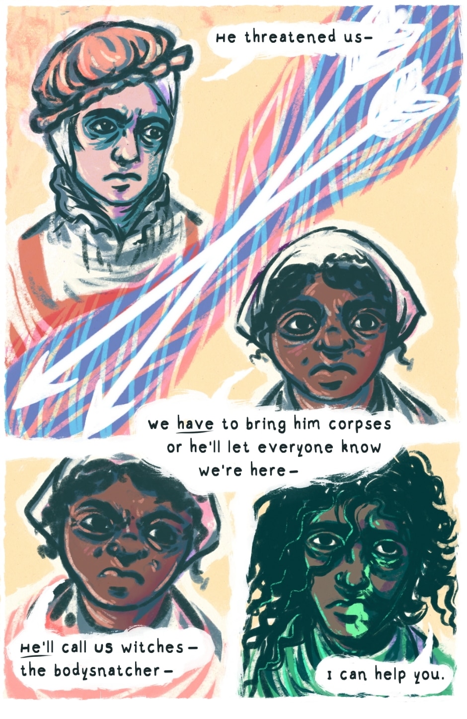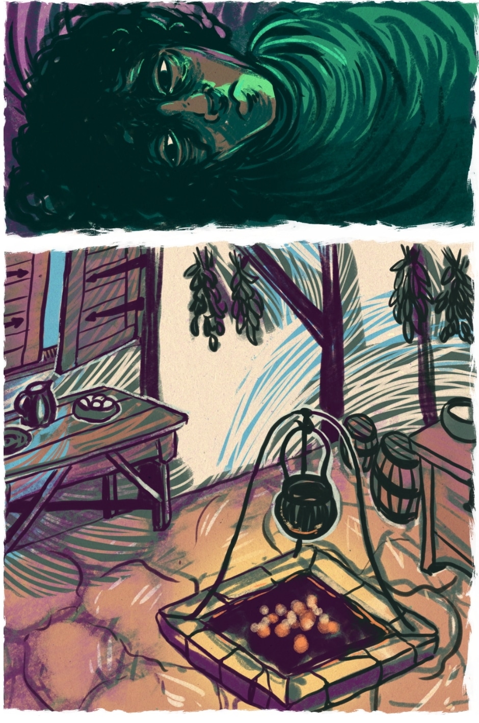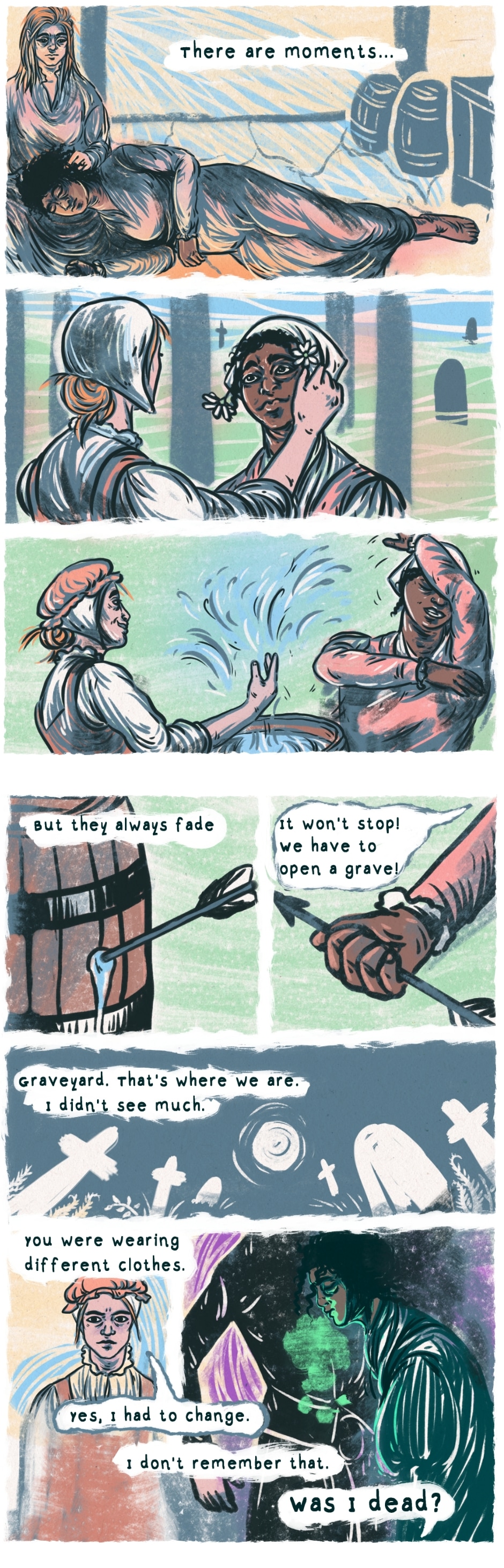 The Trees Are Different Here is a historical folklore fantasy, set in a fictionalised Early Modern Europe. The story has themes of immortality, responsibility and death as well as queer and gendered identities.