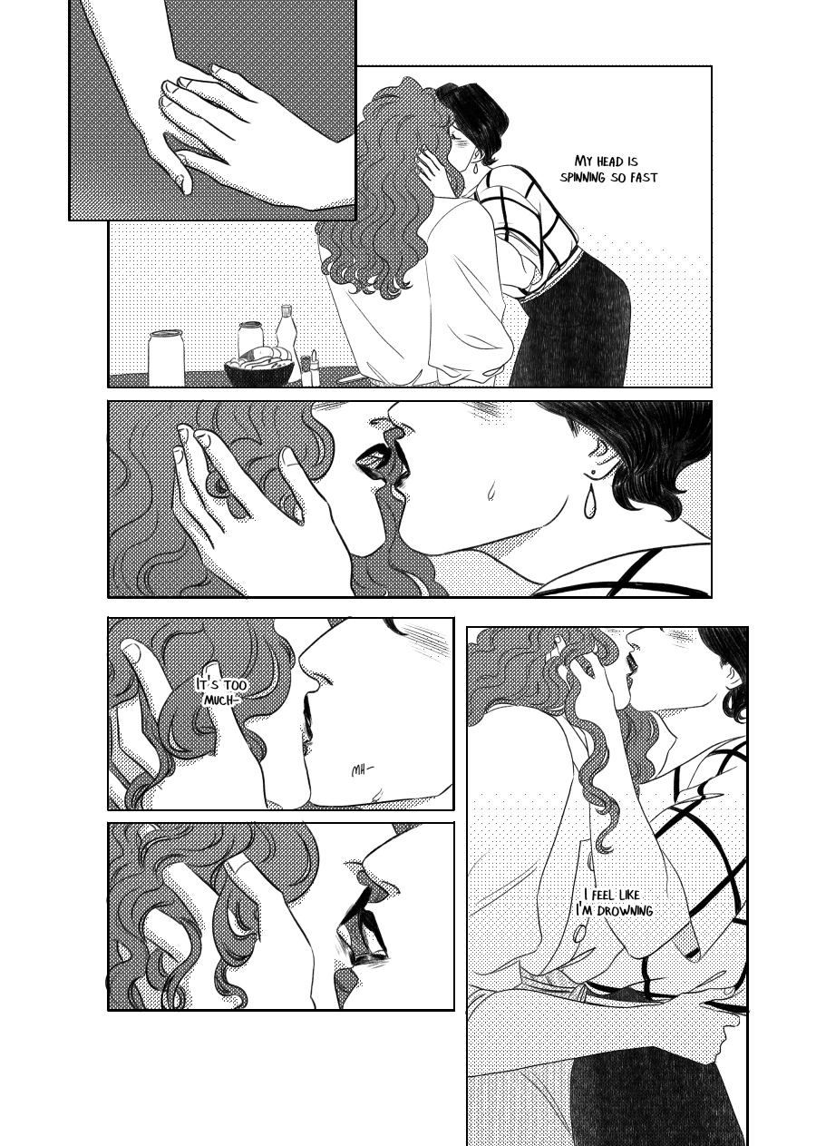 Censored for Tapas' eyes, the uncensored version can be read either on Patreon or in the printed version (there's also a page I didn't upload here because it had no dialogue), you can never be too cautious !