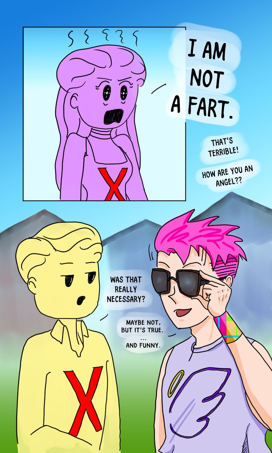 And SNAP! We're out of the clouds and onto the streets. Angel First Class Brad is looking ...conspicuous. And fabulous. I wonder what else angel bodies can do?