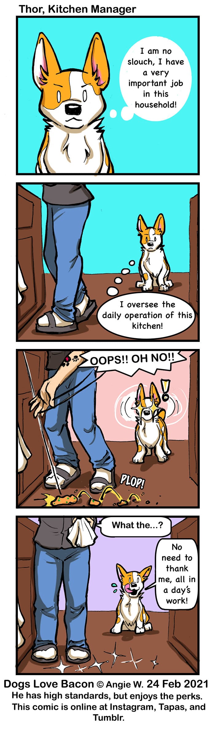 He actually does hang off to the side of the kitchen, like a true professional.