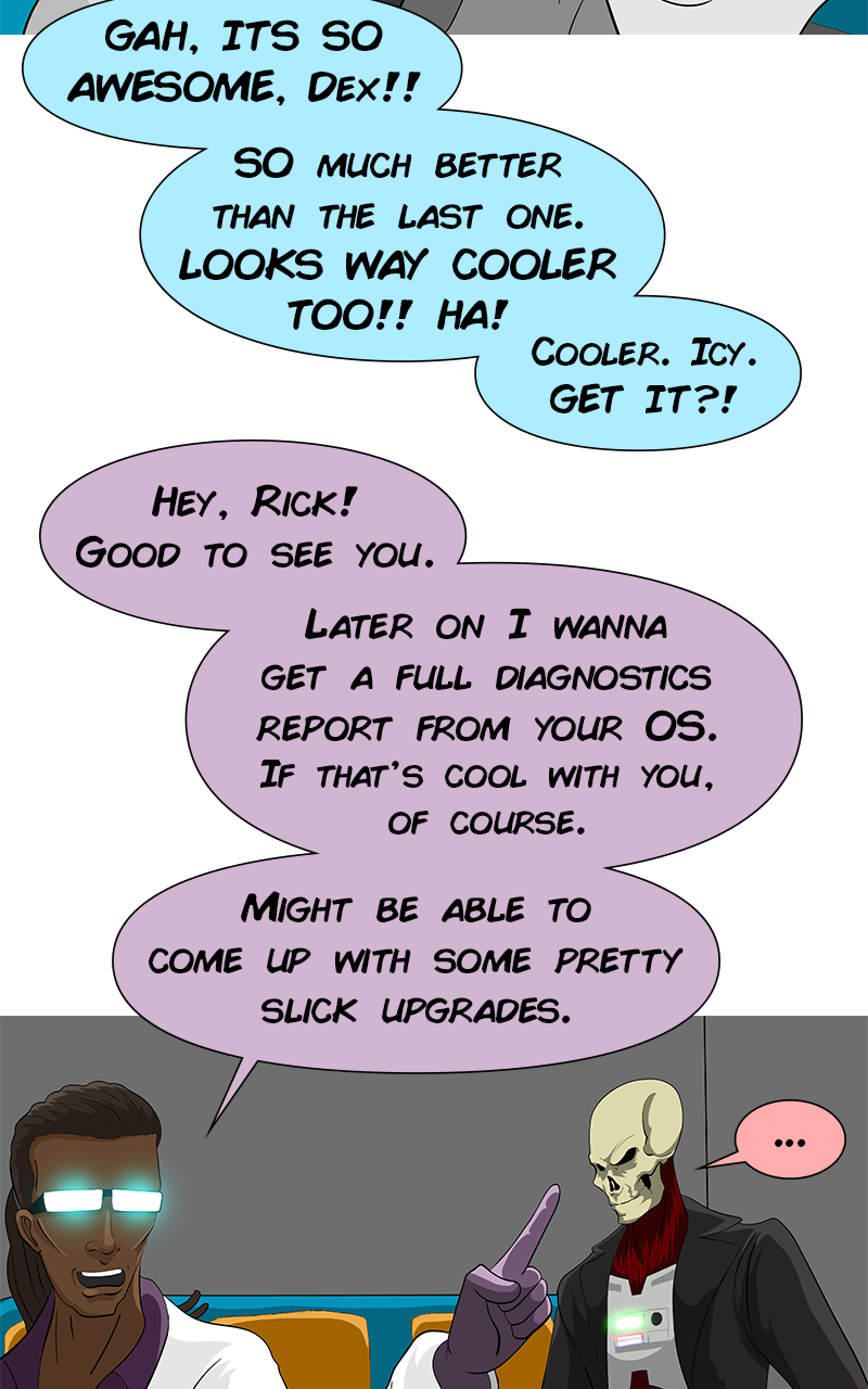 Icy Glamour is a genetically engineered Glam rocker from the future. Rick Motherload is a cybernetic skeleton from the past. Together they must travel across time to keep the spirit of rock and roll alive! Oh, and save the world too.